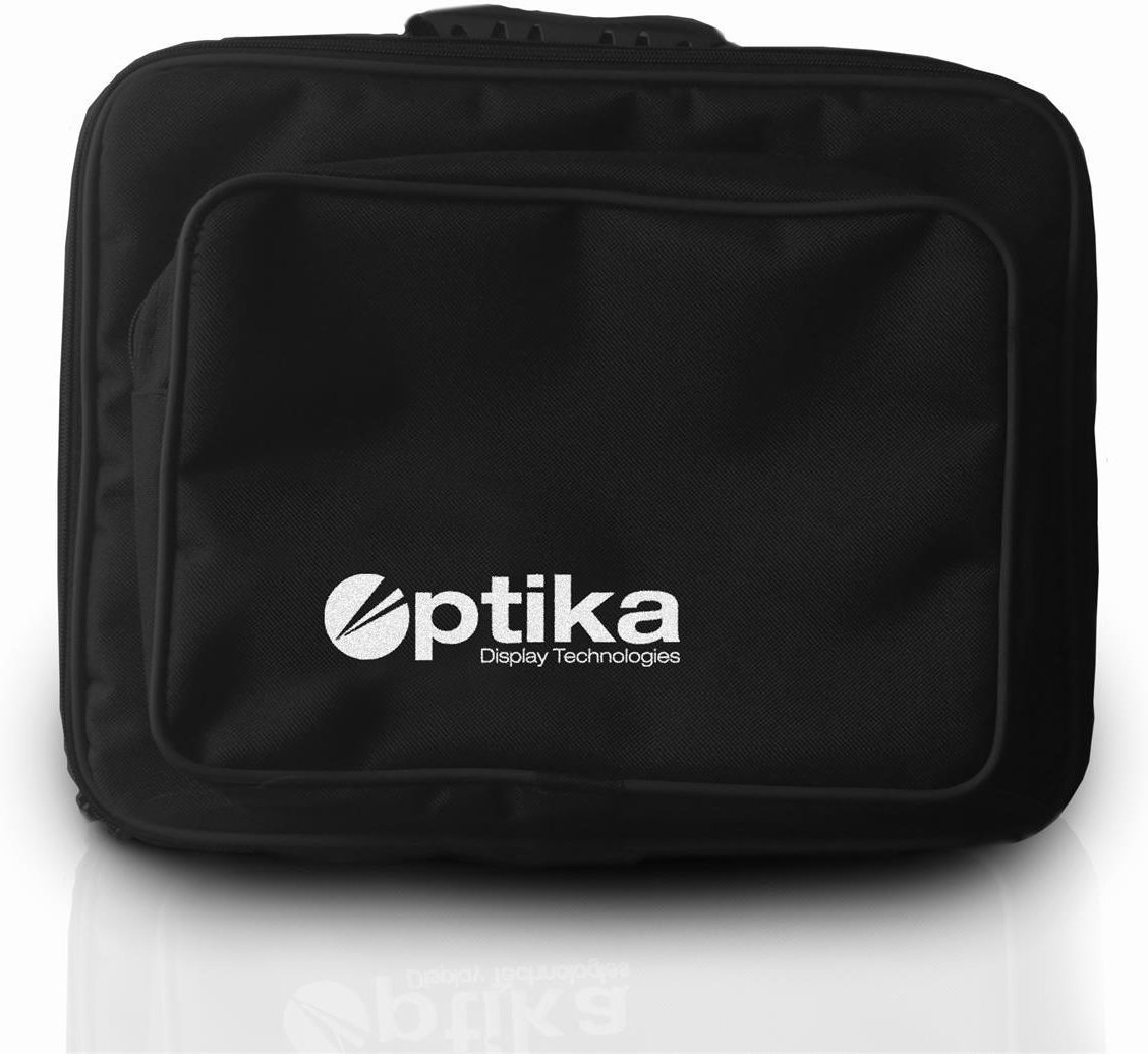 Torba na projektor OPTIKA Uniwersalna i praktyczna torba do przenoszenia i bezpiecznego przechowywania projektora. Może być zastosowana do każdego modelu projektora spełniającego wymiary wewnętrzne torby. Zamykana na suwak skutecznie chroni przed kurzem a piankowe wkładki amortyzują i zabezpieczają projektor przed uszkodzeniami mechanicznymi. Wyposażona w rączkę i regulowany pasek pozwala na przenoszenie projektora na dwa sposoby (klasycznie jak teczkę lub założona na ramię). Posiada także pasek wewnętrzny (mocowany na rzep) pozwalający regulować docisk projektora wewnątrz torby. Materiał: nylon Wymiary wewnętrzne: 30x27x10 cm