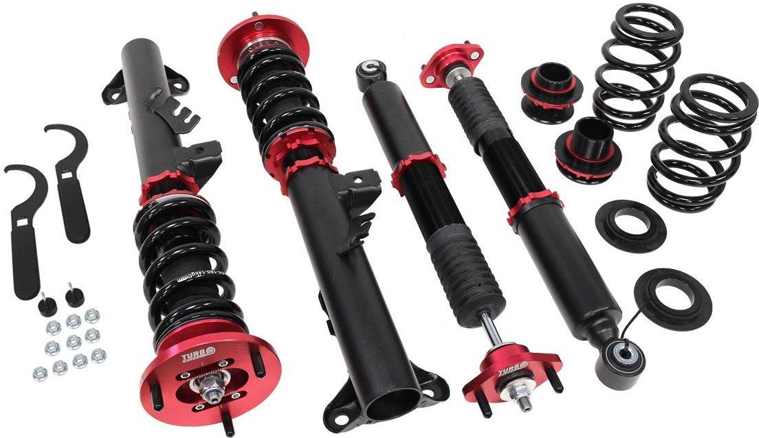 Obniżenie: od -80mm do +20mm Dzięki zaawansowanej 24 stopniowej regulacji twardości można dostosować zawieszenie do własnych potrzeb czyniąc je ekstremalnie twardym bądź też ustawić twardość zbliżoną do serii. Zestaw składa się z: 4 sprężyn 4 gwintów kluczy Produkt objęty 24 miesięczną gwarancją.