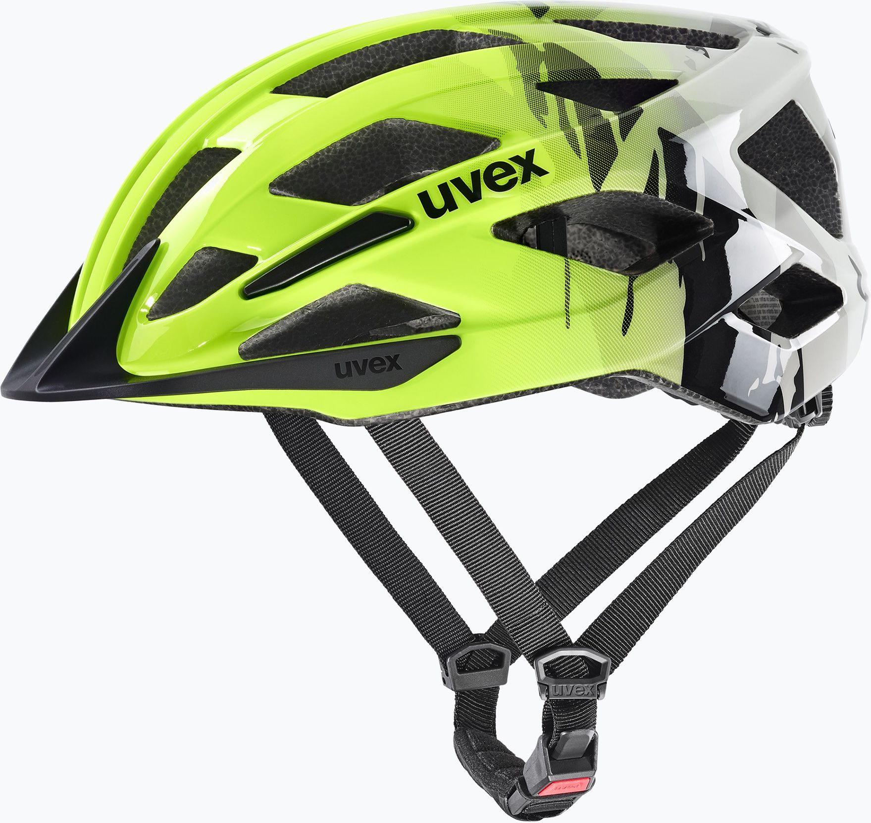 Uvex air wing 2 neon żółty-czarny 50-54 cm kask dziecięcy kids Artykuł nr: 144391 Uvex EAN: 4043197393506 EAN: 4043197393506 Prezentowany wariant: neonowo-żółto-czarny, 50–54 cm. Krótki opis wprowadzający uvex air wing 2 to bezpieczny i wygodny kask dziecięcy na krótkie oraz dłuższe trasy. Konstrukcja Inmold łączy piankę EPS (z recyklingu) z wytrzymałą skorupą z poliwęglanu, dzięki czemu kask pozostaje lekki. Regulacja uvex 3D IAS ułatwia dopasowanie, a wentylacja z moskitierą zapewnia komfort w cieplejsze dni. Najważniejsze zalety Lekka i odporna konstrukcja Inmold (EPS + PC) Regulacja uvex 3D IAS: wysokość i szerokość dopasowania Wentylacja z moskitierą i kanałami powietrznymi Wyjmowana, pralna wyściółka Zapięcie uvex Monomatic obsługiwane jedną ręką Kompatybilność z Plug-in LED (nie w zestawie) Cechy produktu Dla dzieci; zastosowanie: rower Łatwy w obsłudze nawet dla małych dłoni Mały daszek: ochrona przed słońcem, deszczem i wiatrem Paski z płynną regulacją i rozdzielaczem Y Dane techniczne Konstrukcja: Inmold (EPS + skorupa z poliwęglanu) System dopasowania: uvex 3D IAS (regulacja wysokości i szerokości) Zapięcie: uvex Monomatic Wentylacja: kanały + moskitiera Waga: ok. 225 g Warianty Kolor: neonowo-żółto-czarny Rozmiar: 50–54 cm Materiały Pianka EPS (z recyklingu) Skorupa z poliwęglanu (PC) Zawartość zestawu Kask uvex air wing 2 (1 szt.) Technologie Inmold – pianka EPS jest spieniana bezpośrednio w skorupie z poliwęglanu; daje niską masę i wysoką stabilność. IAS 3D – precyzyjna regulacja dopasowania w obwodzie oraz na wysokości głowy. Monomatic – komfortowe zapięcie obsługiwane jedną ręką; pewne trzymanie paska pod brodą. Artykuł nr: 144391