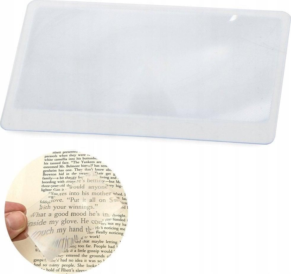LUPA WIZYTÓWKA SOCZEWKA FRESNELA KARTKA 85x55mmLupa do czytania o powiększeniu od 1x do 5x to idealne urządzenie do codziennego użytkowania. Dzięki wyraźnemu i czytelnemu obrazowi, czytanie gazet lub książek staje się dużo łatwiejsze oszczędzając Państwa oczy.SPECYFIKACJA TECHNICZNA:✅ Kod produktu: 09122✅ Wykonana ze specjalnie profilowanego tworzywa✅ Idealnie nadaje się do codziennego użytkowania✅ Idealna do zrobienia jako wizytówka✅ Bardzo wygodna w użyciu✅ Lekka i poręczna✅ Idealny pomysł na prezent lub upominek✅ Powiększenie uzyskujemy oddalając lub przybliżając do przedmiotu✅ Powiększenie soczewki: od 1x do 5x✅ Wymiary ogólne: 55mm x 85mm✅ Wymiary soczewki: 42mm x 80mmZESTAW ZAWIERA:☑️ Fabrycznie nową lupę do czytania☑️ Oryginalne opakowanie folia