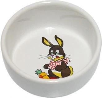 Miska ceramiczna dla królika z dekoracyjnym motywem.