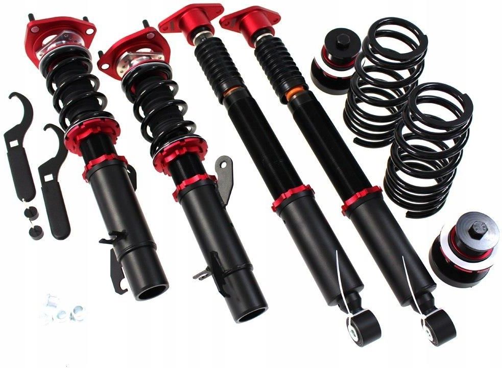 Obniżenie: od -80mm do +20mm Dzięki zaawansowanej 24 stopniowej regulacji twardości można dostosować zawieszenie do własnych potrzeb czyniąc je ekstremalnie twardym bądź też ustawić twardość zbliżoną do serii. Zestaw składa się z: 4 sprężyn 4 gwintów kluczy Produkt objęty 24 miesięczną gwarancją.