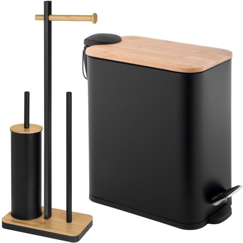 Komplet Yoka: Kosz na śmieci & Stojak na papier toaletowy 3w1 Black Elegance zawiera: Kosz na śmieci do łazienki (prostokątny, 5L, czarny, bambus, segregacja) - Yoka Funkcjonalny i stylowy kosz na śmieci o pojemności 5 litrów, zaprojektowany z myślą o eleganckich, nowoczesnych wnętrzach. …
