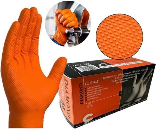 Rękawice gumowe M nitrylowe teksturowane diament pomarańcz DIAMOND 100 szt Rękawice gumowe M nitrylowe teksturowane diament pomarańcz DIAMOND 100 szt Rękawice diagnostyczne z nitrylu - Pomarańczowe Opis produktu Rękawice diagnostyczne, niejałowe, jednorazowego użytku, wykonane z nitrylu. …