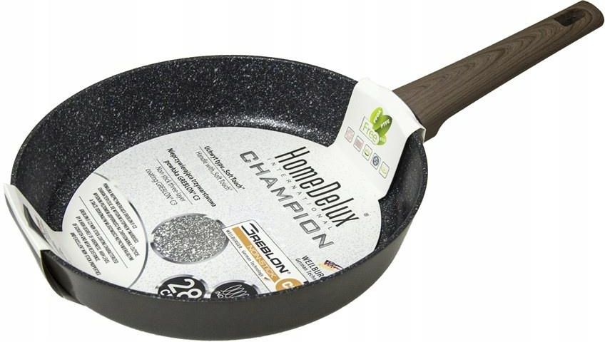 Patelnia HomeDelux HD12193 30 cm Seria CHAMPION to doskonałe narzędzie w każdej kuchni. Opracowana została w oparciu o wyjątkowo trwałą powłokę nieprzywieralną Greblon C3. Ta trzywarstwowa powłoka została stworzona przez niemiecką firmę Weilburger. Jest synonimem jakości i wysokiej odporności na ścieranie. W patelni zastosowany został wygodny uchwyt typu Soft Touch. Specjalne dno umożliwia stosowanie patelni na każdym rodzaju kuchenek, w tym indukcyjnych. Specyfikacja: - Nowoczesna, nieprzywierająca powłoka Greblon C3 - Bardzo praktyczny i elegancki kształt - Poręczny, nienagrzewający się uchwyt typu Soft Touch - Patelnia przystosowana jest do użytku na kuchenkach: - Materiał: Tworzywo sztuczne, Greblon - Przeznaczenie: Kuchenki gazowe, Kuchenki indukcyjne, Kuchenki elektryczne, Kuchenki halogenowe, Kuchenki ceramiczne - Zmywarka: Nie - Średnica [cm]: 30 - Waga: 2 kg