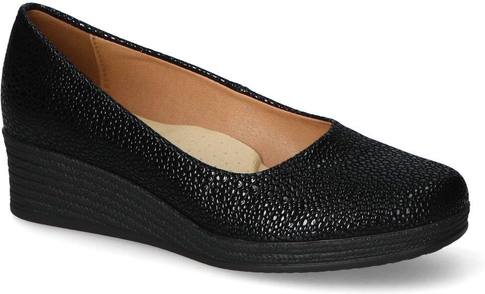 Eleganckie półbuty na koturnie firmy Kamex: - cholewka wykonana została ze skóry ekologicznej - wnętrze pokryte zostało skórą ekologiczną aby zapewnić komfort podczas użytkowania - wkładka wewnętrzna wykonana została ze skóry ekologicznej - koturn o wys. 4,5 cm zapewnia stabilizację - klasyczny czarny kolor oraz elegancki fason tworzą niesamowite połączenie!