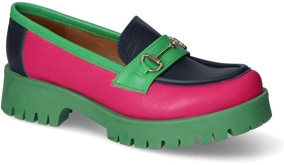Mokasyny Lewski 3476 Zielone/Fuksja/Granat lico Przasnysz