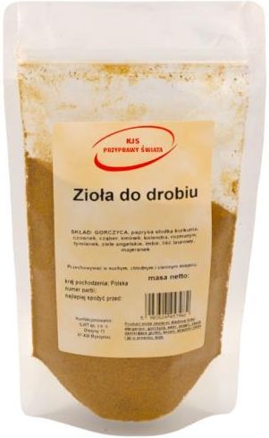 Zioła do drobiu bardzo uniwersalna przyprawa, stworzona z myślą o tradycyjnych daniach z kurczaka. Przygotowana z myślą o każdym rodzaju tego wspaniałego gatunku mięsa. Delikatna pikantność z odrobiną ziół sprawi, że Twoje dania będą bardzo oryginalne i przepełnione smakiem. Zastosowanie Mieszanka stworzona do przyprawiania mięsa drobiowego. Smażony, pieczony czy grillowany kurczak będzie smakował świetnie dzięki naszej przyprawie. Sposób używania Mięso drobiowe należy posypać i dobrze rozprowadzić lub przygotować marynatę. Skład: Gorczyca, papryka słodka, kurkuma, czosnek, cząber, kminek, kolendra, rozmaryn, tymianek, ziele angielskie, imbir, liść laurowy, majeranek Kraj pochodzenia: Polska Masa netto: 500 g Produkt pakowany jest w opakowanie typu "doypack" ze struną, co pozwala na zachowanie długiej świeżości. To opakowanie pozwala na częste otwieranie i zamykanie. Gwarantuje trwałość i pewność co jest ważne podczas transportu. Przechowywać w suchym i ciemnym miejscu ! Produkt może zawierać śladowe ilości alergenów: gorczycę, seler, sezam, zboża zawierające gluten, orzechy, składniki mleka i jaj w proszku, soję !