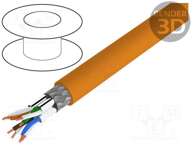 Kabel S/FTP Bitner kat. 7 BiTLAN S/FTP LSOH 100m Zastosowanie: Kable BiTLAN S/FTP cat. 7 LSOH przeznaczone są do transmisji danych, dźwięku i obrazu telewizyjnego w sieciach komputerowych o przepustowości binarnej do 10Gb/s, w których wykorzystywane jest pasmo częstotliwości do 1000MHz. Kable spełniają wymagania kategorii 7 w zakresie częstotliwości 1÷600MHz zgodnie ze standardem okablowania strukturalnego budynków PN-EN 50173-1, ISO/IEC 11801-1, IEC 61156-5 oraz testowane są do pasma częstotliwości 1000 MHz. Wspólne i indywidualne ekranowanie par dodatkowo wpływa na poprawę parametrów teletransmisyjnych, chroniąc przed zakłóceniami zewnętrznymi oraz przesłuchami występującymi pomiędzy parami dlatego można je stosować w sieciach przemysłowych szczególnie narażonych na wpływ zewnętrznych zakłóceń elektromagnetycznych. Kable posiadają powłokę bezhalogenową LSOH, nierozprzestrzeniającą płomienia o bardzo niskiej emisji dymów wg PN-EN 50268, IEC 61034-1(2) i o ograniczonym wydzielaniu gazów korozyjnych wg PN-EN 50267, IEC 60754-2, która umożliwia zastosowanie kabla w miejscach o podwyższonych wymaganiach przeciwpożarowych. Kable sklasyfikowane zgodnie z normą PN-EN 50575 (CPR). Dane techniczne: Temperatura pracy kabla: -30oC do 70oC Temperatura układania: min -10oCdo 50oC Średnica zewnętrzna: 7,8mm Min. promień gięcia: podczas pracy: 6 x Ø; podczas układania: 8 x Ø Średnica przewodnika Cu: 0,57±0,015mm Średnica izolowanej żyły: 1,35±0,05mm Rezystancja pętli żył w torze (max): 145 Ω/km Rezystancja izolacji (min): 2GΩxkm Asymetria rezystancji w torze transmisyjnym: ≤ 2 % Asymetria pojemności torów transmisyjnych względem ziemi przy 1 kHz: max 1600 pF/km Napięcie pracy: 150V Próba napięciowa: 700V AC, 1000V DC Impedancja falowa torów transmisyjnych przy częstotliwości 100MHz: 100 ± 15 Ω Waga kabla: 65kg/km Budowa: Żyły: miedziane (100% miedź) jednodrutowe 0,57mm, z miękkiej miedzi elektrolitycznej Izolacja żył: specjalna mieszanka poliolefinowa typu foam-skin Kolory izolacji żył: zielona, niebieska, brązowa, pomarańczowa - skręcone w parę z żyłą białą Pary: każda para indywidualnie ekranowana folią aluminiową Al/Pet Ośrodek: ekranowane cztery pary żył skręcone razem w ośrodek, w oplocie z drutów miedzianych ocynowanych CuSn Powłoka zewnętrzna: specjalny polimer bezhalogenowy LSOH Kolor powłoki: pomarańczowy RAL 2003 Pakowanie: Odcinki fabryczne - kable o długości 100m zwinięte są w krążki i pakowane w folię.