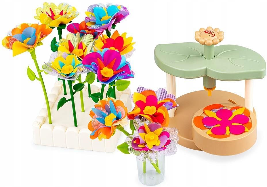 DUMEL FABRYKA RADOŚCI KOLOROWE KWIATY PROJEKTOWANIE BUKIETÓW Projektuj kwiatki, łącząc ze sobą barwne płatki i komponuj z nich bajecznie kolorowe bukiety! Z tym kreatywnym zestaw stworzysz zabawkowe roślinki, które będą wspaniałą ozdobą pokoju, a także uroczym prezentem dla bliskiej osoby. W zestawie znajduje się maszynka do łączenia elementów w główkę kwiatka, kolorowe płatki, szypułki, środki oraz łodygi w dwóch długościach. Dodatkowo, opakowanie zawiera także akcesoria do wyeksponowania gotowych kwiatków i stworzonych z nich bukietów. Produkt przeznaczony jest dla dzieci od 3 roku życia. Cechy produktu: - zabawa polega na łączeniu, przy pomocy maszynki, kolorowych płatków ze środkiem i szypułką w kwiatową główkę oraz przymocowaniu do niej łodygi, w celu stworzenia kwiatka; - w zestawie maszynka do łączenia elementów w główkę kwiatka, 95 kolorowych płatków, 28 łodyg, szypułki, kwiatowe środki oraz akcesoria do wyeksponowania gotowych kwiatów; - wiek: 3+.