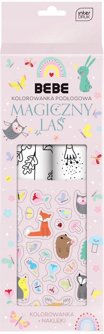 KOLOROWANKA PODŁOGOWA - MAGICZNY LAS Magiczny Las od firmy Interdruk to kolorowanka podłogowa z naklejkami, w której znajdziemy dwa duże arkusze do kolorowania i kolorowe naklejki. Zwierzaki BEBE zapraszają do Magicznego Lasu. Pełno w nim radosnej muzyki, miłości i czarodziejskich mocy. Brakuje tu …