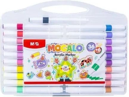 Markery akrylowe M&G Mocalo – 42 kolorów – W kuferku z rączką Uwolnij swoją wyobraźnię z zestawem profesjonalnych markerów akrylowych od renomowanego producenta M&G. Seria Mocalo wyróżnia się niezwykle nasyconymi kolorami i doskonałym kryciem, co czyni je idealnym wyborem zarówno dla artystów, jak i hobbystów zajmujących się rękodziełem (DIY). Dzięki wodoodpornej formule po wyschnięciu, Twoje prace zachowają intensywność barw i trwałość przez bardzo długi czas. Funkcjonalność i kluczowe cechy: Wszechstronność powierzchni: Tusz akrylowy pozwala na dekorowanie drewna, ceramiki, szkła, plastiku, metalu, tkanin oraz kamieni i styropianu. Idealnie nadają się do personalizacji przedmiotów codziennego użytku. Wysokie krycie: Pigment jest gęsty i nieprzezroczysty, co pozwala na nakładanie jasnych kolorów na ciemne tło oraz precyzyjne blendowanie (łączenie) barw przed ich wyschnięciem. Szybkoschnąca formuła: Tusz błyskawicznie wysycha na powierzchni, minimalizując ryzyko rozmazania rysunku podczas pracy, wodoodporny Ergonomiczne opakowanie: Zestaw 42 kolorów zamknięty jest w mocnym plastikowym opakowaniu z wygodną rączką. Kuferek ułatwia przechowywanie markerów w pionie oraz ich bezpieczne transportowanie. Parametry techniczne: Producent:M&G Seria:Mocalo Ilość kolorów:42 unikalnych odcieni Rodzaj tuszu: Akrylowy, nietoksyczny Typ końcówki: Uniwersalna (okrągła), precyzyjna Obudowa: Trwałe, białe tworzywo o trójkątnym przekroju z kolorową skuwką ułatwiającą identyfikację barwy Kod produktu:APMT80K6 WP42 Kod EAN: 6927036794717 Dlaczego warto wybrać markery M&G Mocalo 42 sztuk? Bogata paleta barw: 42 odcieni pozwala na tworzenie skomplikowanych przejść tonalnych i bardzo szczegółowych ilustracji. Bezpieczeństwo pracy: Tusz jest bezwonny i nietoksyczny, co sprawia, że praca z markerami jest komfortowa nawet w mniejszych pomieszczeniach. Trwałość kuferka: Plastikowe pudełko chroni markery przed wysychaniem i uszkodzeniami mechanicznymi, zapewniając porządek na stanowisku pracy.
