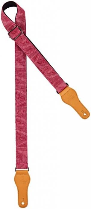 The SPRING SERIES – made from 100% cotton comes for guitar in 49 mm (1,93") width and up to 1580 mm (62,2") length and for ukulele in 37 mm (1,45") width and up to 1390 mm (54,33") length. The strong but flexible faux leather ends fit all types of strap pins and feature an embossed logo. Available in seven different motifs. Pattern: pink
