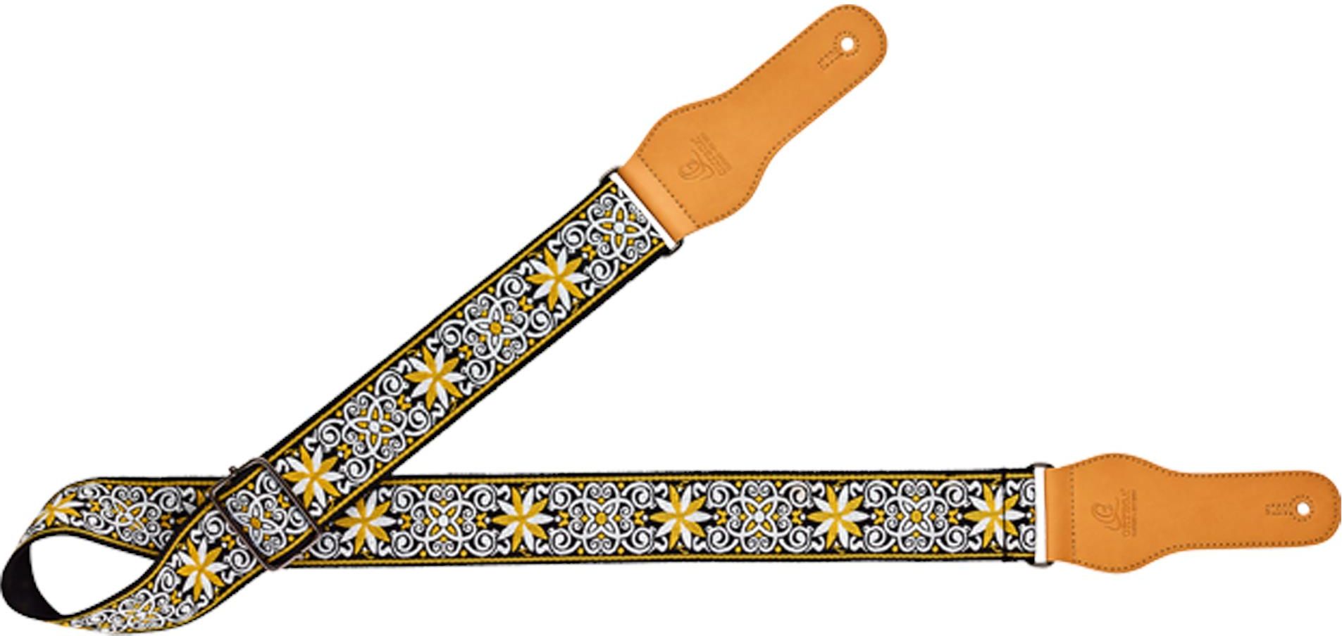 The CREATIVE SERIES – made from 100% cotton comes for guitar in 49 mm (1,93") width and up to 1580 mm (62,2") length and for ukulele in 37 mm (1,45") width and up to 1390 mm (54,33") length. The strong but flexible faux leather ends fit all types of strap pins and feature an embossed logo. Available in seven different motifs. Pattern: classic yellow