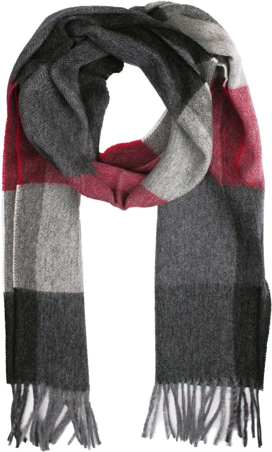Szalik Wełna z Kaszmirem Czerwono-Szary z Frędzlami, w Kratkę Ciepły, Męski -V. Fraas SZAWLN1252 Przecław