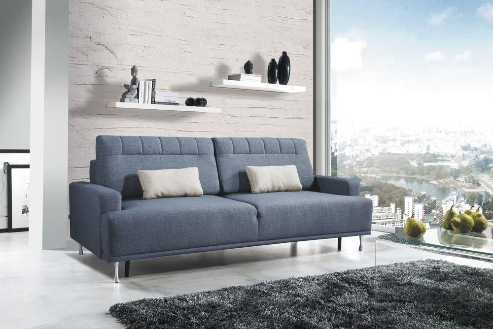 Sofa Uzo Sofa UZO to ponadczasowa klasyka. Proste, kanciaste kształty są uniwersalne i pasują do każdego wnętrza. Poduszki oparciowe wykonane z formatek, są delikatnie przeszyte, tworząc geometryczny wzór. Charakter mebla podkreślają satynowe wysokie nóżki. Mebel zamknięty podłokietnikami. Małe podłużne poduszeczki wykonane w kontrastowym kolorze mogą służyć jako jasiek albo poduszka pod lędźwiowa. Bardzo wysoki komfort użytkowania dzięki zastosowaniu podwójnego sprężynowania w siedzeniu i w oparciu. Sofa ma funkcję spania ze wspomaganiem rozkładania oraz pojemnik na pościel z białej laminowanej płyty. Tkanina na zdjęciu: Salvador 13 Silver Cechy i funkcje Sprężyna falista Sprężyna typu bonell HR - pianka wysokoelastyczna Pojemnik na pościel Wspomaganie rozkładania Wysokość nóżki w meblu: 14 cm Wymiary Szerokość: 224 cm Głębokość: 102 cm Wysokość: 92 cm Powierzchnia spania: 193×142 cm Tkanina na zdjęciu: Salvador 13 Silver Wideo Zachęcamy do obejrzenia filmu pokazującego funkcje, które posiada sofa Uzo Na filmie zaprezentowano działanie funkcji spania DL. Dane dodatkowe: Producent: Libro Gwarancja: 2 lata Montaż: Elementy do złożenia* *montaż polega na złączeniu ze sobą elementów. Osoba bez doświadczenia złoży mebel bez problemu.