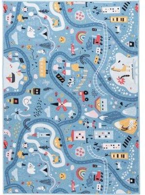 Dywan MULTIDECOR Stella Ulice 80 x 100 cm Niebieski to gwarancja wesołej i dziecięcej zabawy oraz wsparcie w nauce. Dywan z ulicami to doskonały element wnętrza pokoju dziecięcego, który zamieni jego podłogę w niezwykły tor wyścigowy dla samochodów lub krainę dla bajkowych postaci. Unikalny wzór ulic na dywanie pobudza kreatywność dziecka.