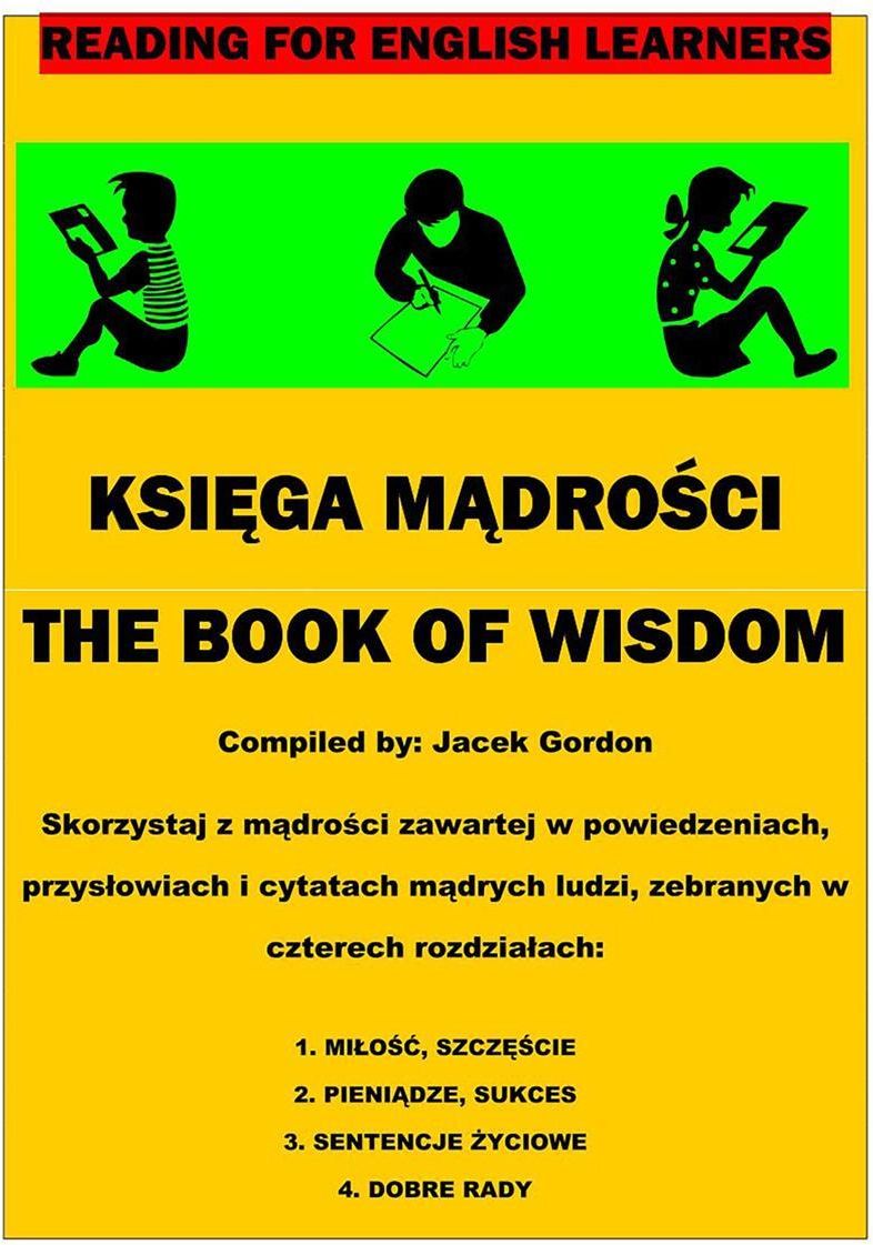 Księga Mądrości – The Book of Wisdom, to książka z serii “Reading for English Learners” przeznaczonych dla osób, które już dobrze znają język angielski, ale chcą doskonalić jego praktyczne zastosowanie poprzez interesujące teksty napisane stosunkowo prostym i powszechnie używanym językiem angielskim. Książka zawiera powiedzenia, przysłowia i cytaty mądrych ludzi oraz ciekawe komentarze do nich, w językach angielskim i polskim. Książka jest przeznaczona do odczytu na komputerach i tabletach.