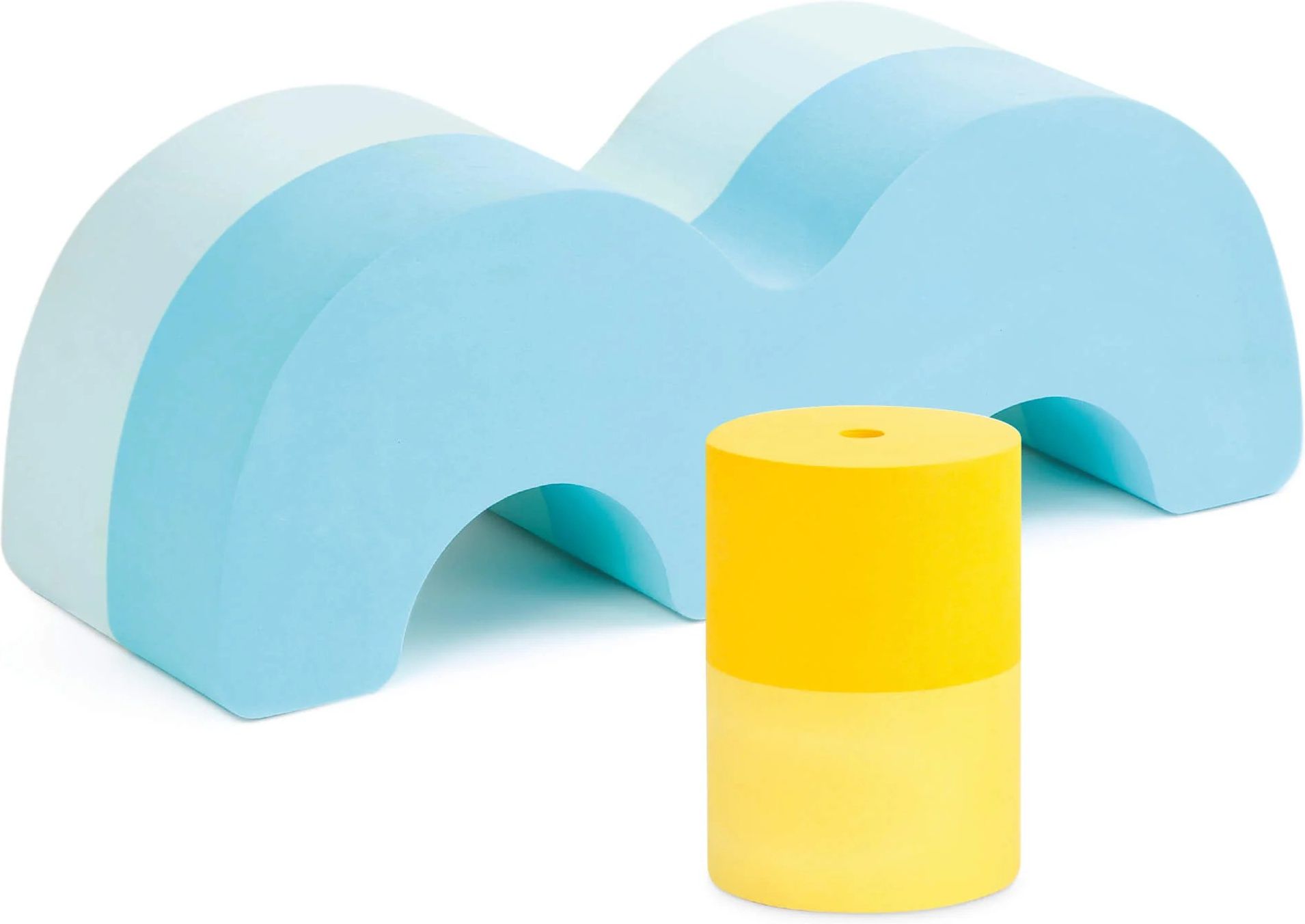 Zabawa rozwijająca umiejętności motoryczne Zestaw zawiera 2 moduły rozwijające umiejętności motoryczne, które rozwijają koordynację i wyobraźnię. Oba moduły są wykonane z lekkiej, bardzo wytrzymałej i stabilnej pianki, dzięki czemu każde dziecko może bawić się całkowicie bezpiecznie. Maluchy mogą oprzeć się o nie, aby nauczyć się wstawać. Z pomocą osoby dorosłej będą mogły pokonywać przeszkody chodząc po nich. Starsze dzieci będą mogły tworzyć tory, sprawdzać swoją równowagę lub bawić się na huśtawce, korzystając z obu modułów jednocześnie. Moduły mogą być również używane jako siedziska lub stopnie. Wiek: +12 miesięcy Rozmiar produktu: - Niebieski: 60 x 21 x 18 cm - Żółty: Ø14 x 18 cm Materiał: 100% EVA