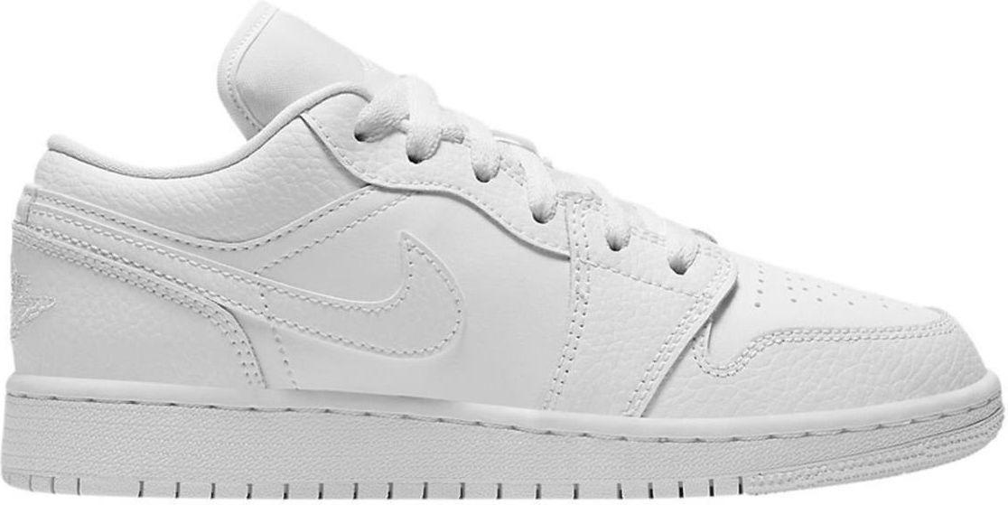 Air Jordan 1 Low Triple White to klasyczny i minimalistyczny model butów z kultowej serii Air Jordan, idealny dla osób ceniących sobie czysty i elegancki design. Ten model zachowuje klasyczną sylwetkę Air Jordan 1, jednak wyróżnia się całkowicie białą kolorystyką, która nadaje mu świeżości i uniwersalności. Buty posiadają cholewkę z wysokiej jakości skóry, co gwarantuje trwałość oraz komfort noszenia. Całkowicie biała kolorystyka, znana jako Triple White, sprawia, że buty te są niezwykle wszechstronne i łatwo dopasowują się do różnorodnych stylizacji, od sportowych po casualowe. Air Jordan 1 Low Triple White cechuje się także charakterystycznymi dla modelu Air Jordan 1 elementami, takimi jak logo Nike Swoosh po bokach butów oraz ikonograficzne logo Air Jordan na języku. Mimo swojej subtelności, te detale dodają butom autentyczności i klasy. Buty są wyposażone w solidną gumową podeszwę, która zapewnia przyczepność i trwałość, a także system amortyzacji Air-Sole dla maksymalnego komfortu. Ta technologia amortyzacji jest kluczowa dla zapewnienia wygody w codziennym użytkowaniu.