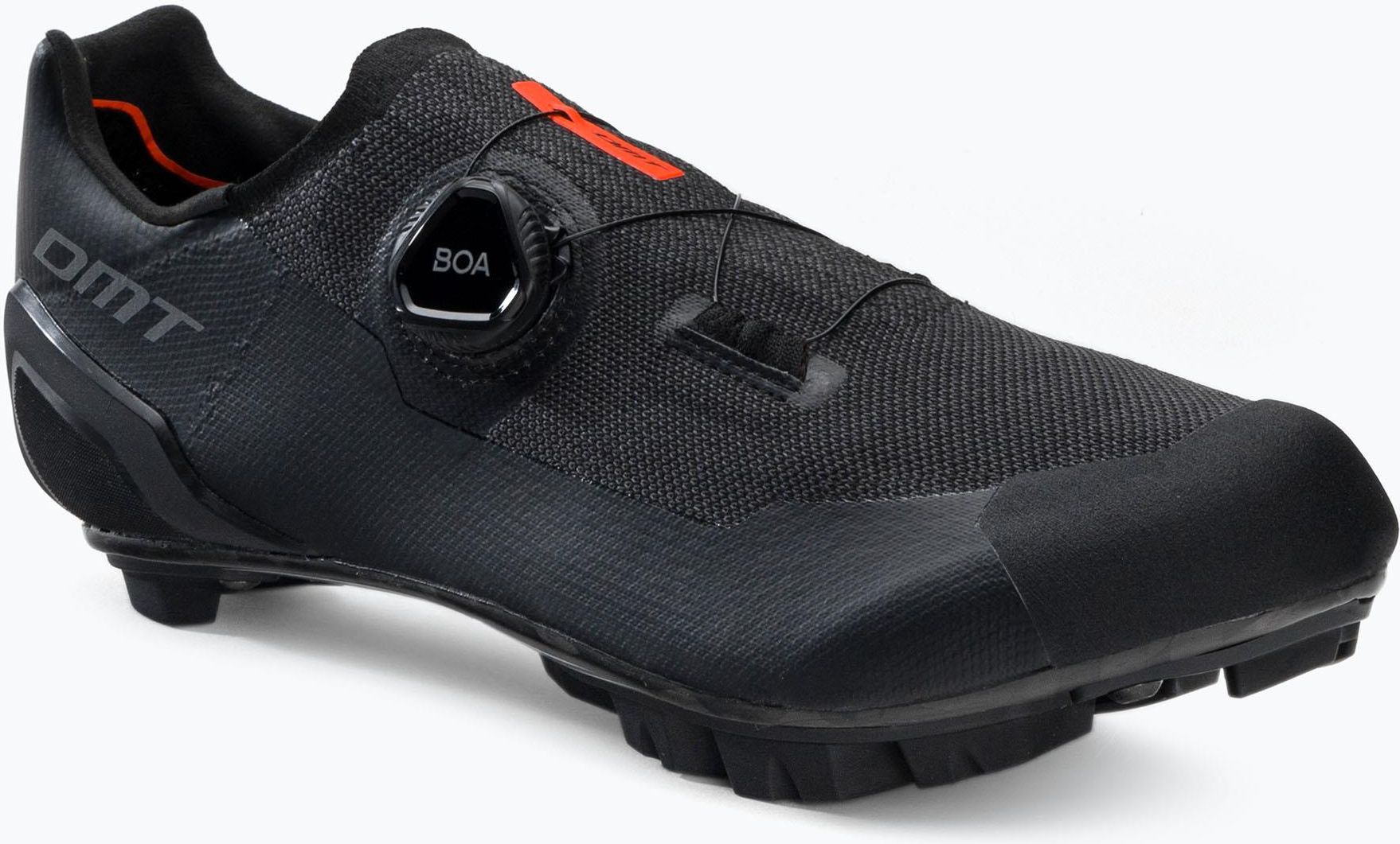 DMT KM30 to lekkie, wygodne buty przeznaczone dla rowerzystów górskich. Ich cholewkę wykonano z innowacyjnego w świecie kolarstwa materiału – przewiewnej dzianiny 3D Knit. Zapewnia ona bardzo dobrą wentylację, dzięki czemu oferuje większy komfort podczas intensywnego wysiłku w ciepłe dni. Pozostałe atuty tkaniny to właściwości szybkoschnące oraz elastyczność, dzięki której buty idealnie dopasowują się do kształtu stopy. Model KM30 sprawdzi się nie tylko do jazdy na zewnątrz, ale także do treningów na trenażerze, czyli wewnątrz budynków. Przy tworzeniu podeszwy włoski producent zdecydował się na sprawdzone rozwiązania, które gwarantują maksymalnie efektywny transfer mocy. Stworzono ją z lekkiego oraz sztywnego włókna węglowego. Specjalne wypustki zapobiegają ślizganiu się po zejściu z roweru, a gumowe osłony na podeszwie zapobiegają ścieraniu się karbonu. W razie potrzeby można je wymienić (podobnie jak bloki), co przedłuża żywotność butów. Komfort noszenia poprawia mocowanie BOA Fit, czyli system cienkich żyłek regulowanych za pomocą pokrętła umieszczonego na boku buta. Działa ono zdecydowanie precyzyjniej niż rzepy czy sznurowadła, a także pozwala łatwo obsługiwać zapięcie w czasie jazdy. Najważniejsze informacje: Model przeznaczony do MTB XC/Marathon. Cholewa z materiału Knit 3D. Zróżnicowana grubość materiału w różnych strefach buta. Karbonowa podeszwa z technologią Air Tech. Sztywna, lekka i dobrze wentylowana. Możliwość regulacji ustawienia bloków o 8 milimetrów (przód/tył). System Boa® Fit z pojedynczym pokrętłem IPL6. Odblaskowe logo. Specjalnie uformowany kształt, który zapobiega ocieraniu pięt. Odblaskowe logo dla poprawy widoczności. Wzmocniony materiał na czubkach palców, aby chronić je przed ewentualnymi uderzeniami.