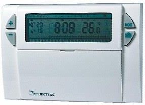 Programowalny regulator temperatury Elektra Digi2 z wbudowanym czujnikiem temperatury powietrza.Elektroniczny regulator temperatury steruje zasilaniem elementów grzejnych w celu uzyskania pożądanej temperatury, powodując ekonomiczne zużycie energii i komfort cieplny dostosowany do wymagań użytkownika. Czytelny ekran zbudowany na ciekłych kryształach ułatwia programowanie przy użyciu niewielkiej ilości przycisków.Regulator bardzo dobrze nadaje się do sterownia elektrycznym ogrzewaniem podłogowym.ProgramowanieProgramowanie odbywa się poprzez przyporządkowanie jednemu z dni dowolnego programu. W programie przypisywana jest wartości dla temperatury dziennej i nocnej, a następnie wywołuje się je w odpowiednim dla użytkownika czasie.Program przedłużonej nieobecności (wakacyjny)Utrzymuje dowolną temperaturę w pomieszczeniu podczas nieobecności użytkowników.Program utrzymuje zadaną temperaturą od 1 do 99 dni, po czym powraca do realizacji uprzednio zdefiniowanych programów.Sterowanie telefoniczneRegulator temperatury Elektra Digi 2 może współpracować z urządzeniem umożliwiającym sterowanie telefoniczne (np. Domocontrol 122). Dzięki takiemu rozwiązaniu można zdalnie przełączać regulator pomiędzy trybem automatycznym (realizacja bieżącego programu) oraz trybem ochrony przed zamarzaniem (stała wartość +6 st. C).Montaż regulatora z wbudowanym powietrznym czujnikiem temperaturyRegulator musi być umieszczony w miejscu nienarażonym na przeciągi oraz bezpośredni wpływ słońca lub innego rodzaju ogrzewanie, które może zakłócić prawidłowy pomiar temperatury pomieszczenia.MontażRegulator Elektra Digi 2 został zaprojektowany do montażu natynkowego.