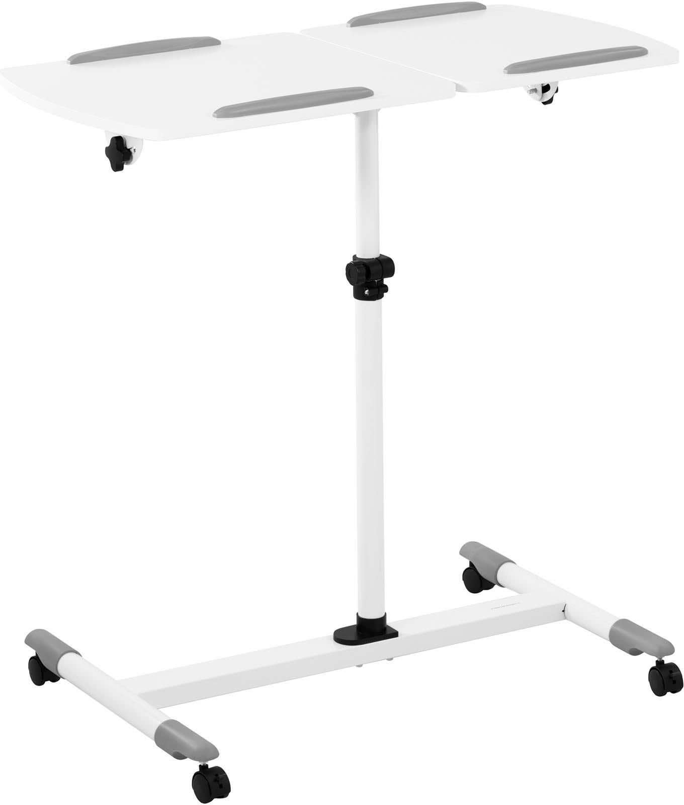 Stolik stojak pod laptopa odchylany regulowany 2 blaty 43 x 91 cm 700 - 110 FROMM&STARCK Kod producenta: 10260365 Stolik pod laptopa marki Fromm & Starck sprawdzi się jako wygodne i mobilne stanowisko do pracy podczas prezentacji, w warsztacie, domu czy w laboratorium. Dzięki regulacji mebel z łatwością można dostosować do każdej sytuacji. Stolik posiada dwa blaty o wymiarach 42 x 40,5 cm i 42 x 50,5 cm oraz o grubości 15,2 - 15,4 mm, zapewniające nośność do 10 kg. Wysokość regulowana jest w przedziale 700 - 1100 mm. Konstrukcję wykonano z powlekanych rurek stalowych. Powierzchnia robocza może być nachylana w zakresie -35 do 30°. 4 kółka zapewniają mu mobilność. Cechy produktu: - Uniwersalność - regulacja wysokości 700-1100 mm, - Przestronność - 2 powierzchnie robocze 42 x 40,5 cm oraz 42 x 50,5 cm, - Trwałość - wytrzymała konstrukcja ze stali, - Mobilność - 4 koła. Parametry techniczne: - Model - STAR_LDS_12 - Kod producenta - 10260365 - Stan - Nowy - Kolor - Biały - Wymiary blatu [mm] - 910 x 430 - Materiał - Blat: MDF/ABS/PVC / rama: stal - Grubość blatu [mm] - 15.2 - 15.4 - Zakres wysokości [mm] - 700-1100 - Mechanizm podnoszenia - Hydrauliczny - Liczba kół [szt.] - 4 - Maksymalne obciążenie blatu [kg] - 10 - Wymiary (DxSxW) [cm] - 91 x 42 x 114 - Waga [kg] - 8,7 - Wymiary wysyłki (DxSxW) [cm] - 82 x 74 x 11 - Waga wysyłki [kg] - 10,7 W zestawie: - Stolik pod laptop - Akcesoria montażowe - Instrukcja obsługi Kod producenta: 1014795 Gwarancja: 2 lata
