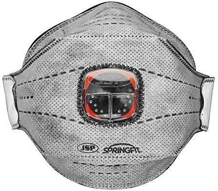 Zintegrowany komfort konstrukcyjny – płaska jednorazowa maska SpringFit zapewnia niezrównane, bezpieczne dopasowanie dzięki unikalnej strukturze endoszkieletowej SpringFit wprowadza mnóstwo funkcji, które maksymalizują dopasowanie, komfort, kompatybilność i wydajność Zgodność z normą: EN149 ENDOSKELETON - wewnętrzna rama szkieletu gwarantuje, że każda maska zachowuje swój kształt, zwiększając wydajność i utrzymując sztywność. Zintegrowana funkcja sprężyny pochłania ruchy twarzy, zapewniając bezpieczne dopasowanie i uszczelnienie twarzy Kompatybilność i widoczność – niskoprofilowa konstrukcja SpringFit zapewnia wyjątkową kompatybilność z innymi środkami ochrony przed szyją, takimi jak okulary. Niski profil zapewnia również lepsze pole widzenia dla użytkownika KOMFORT - Spawany nosek zapewnia ciaśniejsze dopasowanie i minimalizuje podrażnienia. Regulowany pasek oznacza, że SpringFit można wygodnie dopasować do wszystkich rozmiarów i kształtów głowy. Obszar piankowy wokół wewnętrznej części maski zapewnia wygodne dopasowanie Kompaktowa – składana konstrukcja sprawia, że SpringFit jest bardziej kompaktowa, a łatwo mieści się w kieszeniach SpringFit jest również indywidualnie zapakowana, aby zapewnić wysoki poziom higieny Zawór wydechowy typu – unikalny zawór Typhoon został zaprojektowany w celu zmniejszenia odporności na oddychanie, gromadzenia się ciepła i wilgoci. Zawór nie ma wpływu żadna wilgoć, dlatego może być używany z taką samą wydajnością w bardzo niskich temperaturach (-40°C (zależny od modelu) Seria SpringFit – dostępna w wersji FFP3 i FFP2 zaworów i niezaworów z uciążliwym zapachem warstwy węglowej dostępnej w modelu FFP3