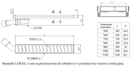 Lorac Delfin odpływ liniowy L-1100mm OL-D110, głębokość rynny spływowej 22,1mm - 26,9mm, głębokość zwiększa się w kierunku syfonu aby ułatwić odpływ wody z rynny, wysokość syfonu 65mm, wysokość montażowa w podłodze 93mm, szerokość rynny 80mm, długość 1100mm, przepustowość syfonu 50 litrów na …