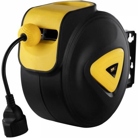 Automatyczny bęben kablowy 20 + 1,5 m marki MSW Model: PRO-E 20 Nr katalogowy: 10060680 Stan produktu: Nowy Najważniejsze cechy produktu Uniwersalne zastosowanie – z każdym sprzętem elektrycznym 230V/50Hz Ergonomia – automatyczny mechanizm zwijania, wąż długi na 20 m Wygoda – łatwy montaż na ścianie lub suficie Bezpieczeństwo – szczelna obudowa na przewody elektryczne Specyfikacja techniczna Materiał - PP Kolor - Czarny, Żółty Napięcie [V] - 230 Stopień ochrony IP - IP20 Typ kabla - H05Vv-F 3 x 1,5 mm2 Temperatura otoczenia [°C] - -5 - 55 Szczegóły zasilania - AC 230 V /16 A /50 Hz Bezpiecznik - 10 A Długość węża - 20 m Maksymalne obciążenie przy niepełnym rozwinięciu kabla - 1000 W Maksymalne obciążenie przy pełnym rozwinięciu kabla - 2300 W Instrukcja obsługi - Tak Wysokość paczki [cm] - 30 Długość paczki [cm] - 32 Szerokość paczki [cm] - 17 Waga paczki [kg] - 5.8 Wysokość produktu [cm] - 27.5 Długość produktu [cm] - 36 Szerokość produktu [cm] - 15 Waga produktu [kg] - 5.35 Liczba paczek - 1 Automatyczny bęben kablowy 20 + 1,5 m Automatyczny bęben kablowy marki MSW jest przeznaczony do zwiększonego zasięgu przewodzenia energii elektrycznej. Dzięki niewielkiej wadze oraz poręcznym rozmiarom urządzenie pozwala uzyskać prąd zawsze i wszędzie tam, gdzie jest to potrzebne. Model PRO-E 20 znajdzie zastosowanie w prywatnych warsztatach oraz w codziennym, domowym użyciu. Bęben kablowy PRO-E 20 - charakterystyka Wszechstronność i efektywność bębna kablowego MSW polegają na tym, że dysponuje on rozwijanym wężem o długości 20 m, który przewodzi prąd o napięciu 230 V i częstotliwości 50Hz. Możliwa jest więc eksploatacja wszelkiego rodzaju sprzętu elektrycznego, przy zwiększonym zasięgu wykonywanej pracy. Wygodne użytkowanie modelu PRO-E 20 to zasługa sprężynowego mechanizmu zwijającego z zatrzaskiem. Pozycje blokujące rozmieszczono z częstotliwością 2-3 na każdy metr, dzięki czemu ustawienie odpowiedniego zasięgu przebiega bardzo sprawnie. Po zakończeniu pracy napędzany sprężynowo kabel zwija się szybko oraz bez ryzyka splątania Łatwy montaż urządzenia oferowanego przez MSW został osiągnięty dzięki konstrukcji wspornika, umożliwiającego szybkie zamontowanie bębna na ścianie (zalecana wysokość 80 cm) lub na suficie. Bezpieczeństwo pracy z bębnem kablowym to zasługa szczelnej obudowy, w której przechowywane są długie przewody elektryczne. Takie rozwiązanie chroni je przed uszkodzeniem ze strony czynników zewnętrznych oraz zabezpiecza użytkownika przed porażeniem prądem. Funkcjonalny, automatyczny bęben kablowy oferowany przez oficjalny sklep producenta marki MSW zaprojektowano z myślą o szerokiej użyteczności i uniwersalnym zastosowaniu. Solidna konstrukcja, wygodna obsługa oraz odpowiednie zabezpieczenia sprawiają, że model PRO-E 20 sprawdzi się w sektorze prywatnym. Zawartość przesyłki Automatyczny bęben kablowy 20 + 1,5 Kołki rozporowe (L = 50 mm Ø10 / Ø6mm) – 3 szt. Instrukcja obsługi Zdjęcia produktu
