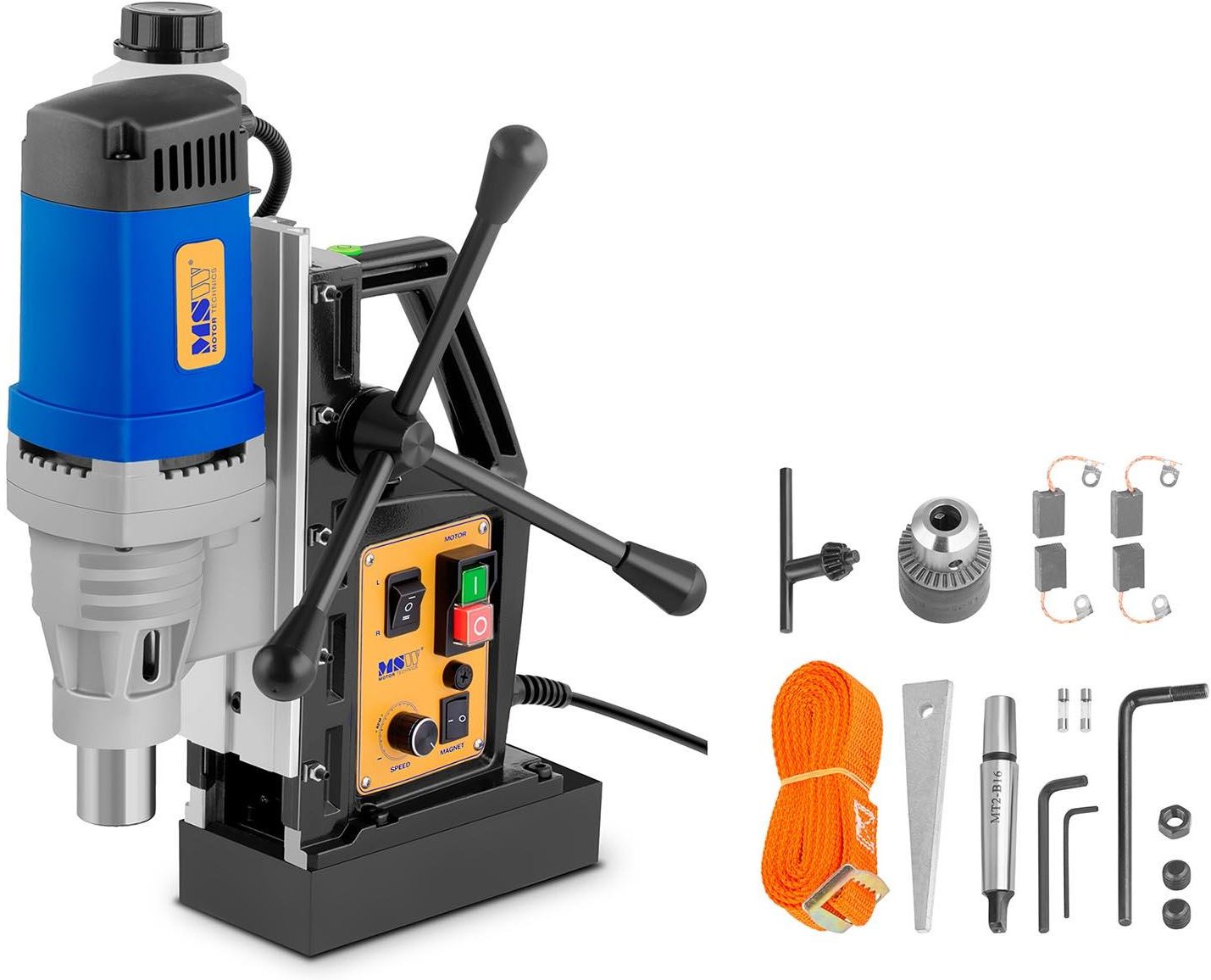 Wiertarka magnetyczna ze stopą magnetyczną 1680W M MSW Numer producenta: MSW 10060433 Wiertarka magnetyczna MSW za sprawą swojej konstrukcji pozwoli na pracę w trudnych warunkach oraz w różnych położeniach np. w pionie. Jest to możliwe dzięki silnemu elektromagnesowi o mocy 13800 N, który utrzymuje …
