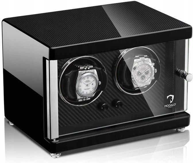 Nazwa: Rotomat na 2 zegarki Producent: MODALO Model: AMBIENTE 1502884S Materiał obudowy: drewno Kolor obudowy: lakierowana czerń fortepianowa Kolorwyściółki: czarny Obroty: od 900 do 1700 TPD Wymiary: 24,0 × 16,5 × 16,5 cm Rodzaj zasilania: sieciowe oraz bateryjne Gwarancja: 24 miesiące