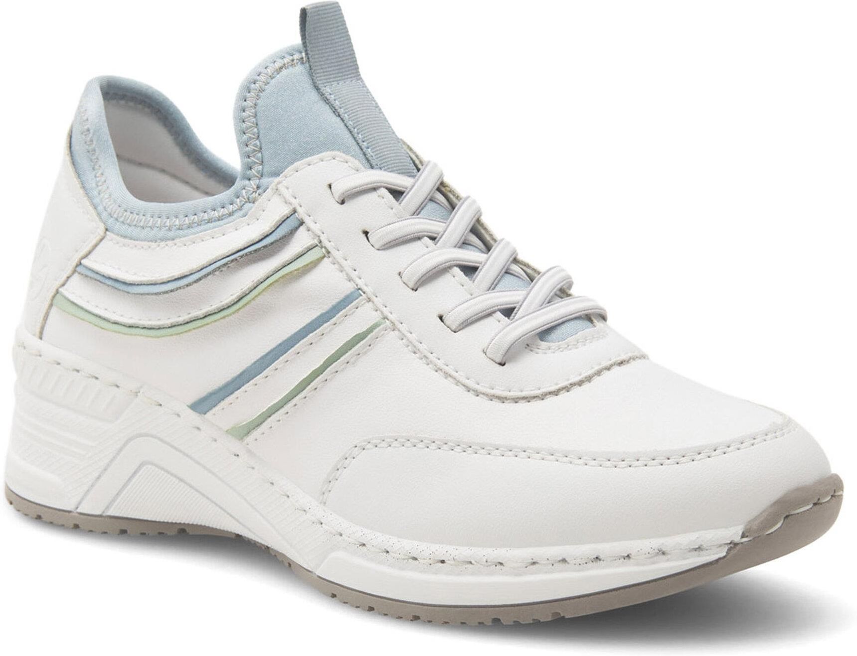 Lekkość i komfort na każdy dzień? Oto wsuwane półbuty na koturnie od marki Rieker, które świetnie dopełnią Twój casualowy look. Ich biały kolor dodaje stylizacji świeżości, a skórzane wykończenie zapewnia wysoką jakość i trwałość. Okrągły nosek gwarantuje wygodę, a koturn sprawia, że sylwetka wydaje się smuklejsza, zachowując przy tym komfort podczas chodzenia. Wybierz te wsuwane półbuty, aby codziennie cieszyć się wygodą i prostotą, z nutą eleganckiego designu marki Rieker! Od ponad stu lat marka Rieker oferuje niezwykle komfortowe i trwałe obuwie, które powstaje z myślą o zdrowiu stóp. Dzięki wieloletniemu doświadczeniu w produkcji obuwia, ta niemiecka marka doskonale potrafi łączyć wygodę ze stylem, dlatego w ofercie znajdziesz buty w modnych, oryginalnych fasonach, które każdemu przypadną do gustu. Buty Rieker tworzone są z materiałów wysokiej jakości, przez co odznaczają się wyjątkową elastycznością i trwałością, ale też lekkością. Ponadto w obuwiu stosuje się szerszą formę zapewniającą odpowiednią stabilizację stopy, specjalne podeszwy absorbujące wstrząsy oraz odciążające stawy i kręgosłup, a także wyjmowane wkładki z pianki Memory Foam, która idealnie dopasowuje się do kształtu stóp. To doskonałe produkty dla tych, którzy ponad wszystko cenią sobie komfort. Przekonaj się!