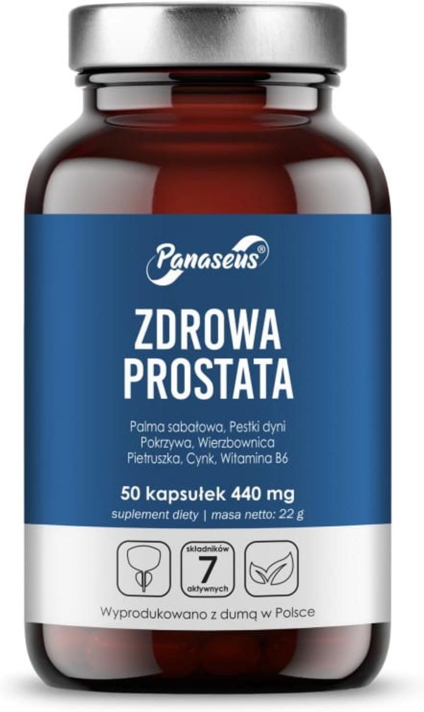 Zdrowa prostata 50 kapsułek Suplement diety Naturalny zestaw składników odżywczych dla mężczyzn. Wsparcie zdrowia prostaty. Prawidłowe wsparcie funkcji dróg moczowych. Wsparcie prawidłowej regulacji aktywności hormonalnej. Czym jest prostata? Prostata to gruczoł, który funkcjonuje w układzie rozrodczym mężczyzn. Pod względem wielkości przypomina on rozmiary orzecha włoskiego, a znajduje się tuż pod pęcherzem. W ciągu życia człowieka prostata ulega wielu zmianom. Gruczoł ten na ogół pozostaje stabilny do 45 roku życia. Jak zadbać o zdrowie prostaty Podobnie, jak rzecz ma się z dbaniem o cały organizm, zdrowa prostata jest często efektem codziennych wyborów dotyczących stylu życia. Mężczyźni pragnący zadbać o swoje zdrowie powinni zacząć od zbalansowanej diety, bogatej w warzywa i owoce, zapewniając sobie niezbędne witaminy i minerały, a także solidną porcję antyoksydantów. Aktywność fizyczna także gra kluczową rolę, poprawiając ukrwienie i natlenienie całego organizmu. Ważne jest także ograniczenie stresu i korzystania z używek, takich jak alkohol czy papierosy. Pamiętaj, że dbając o zdrowie prostaty należy przede wszystkim odbywać regularne badania kontrolne u lekarza. 7 naturalnych składników dla mężczyzn Palma sabałowa: jest źródłem kwasów tłuszczowych niezbędnych dla zachowania funkcji seksualnych, wspiera prawidłowe funkcje dróg moczowych u mężczyzn i wpływa pozytywnie na zdrowie prostaty. Pokrzywa: wspiera witalność organizmu. Wierzbownica: pomaga zachować zdrowie prostaty. Cynk: przyczynia się do utrzymania prawidłowej płodności i funkcji rozrodczych, a także bierze udział w utrzymaniu odpowiedniego poziomu testosteronu we krwi i pomaga w ochronie komórek przed stresem oksydacyjnym. Witamina B6: przyczynia się do regulacji aktywności hormonalnej. Pestki dyni: często stosowane w dietach przepisywanych dla mężczyzn, są źródłem minerałów i wartości odżywczych. Pietruszka: ziele znane na całym świecie ze względu na smak i zawartą w nim kompozycję składników odżywczych. Zalecane spożycie 1 kapsułka raz dziennie. Sposób użycia Kapsułkę połknąć i popić dużą ilością wody, po pierwszym posiłku. Składniki ekstrakt z pestek dyni (Cucurbita pepo) , ekstrakt z korzenia pietruszki zwyczajnej (Petroselinum crispim) 10:1, ekstrakt z liści pokrzywy zwyczajnej (Urtica dioica) 20:1, substancja wypełniająca:celuloza mikrokrystaliczna, ekstrakt z ziela wierzbownicy drobnokwiatowej (Epilobium parviflorum) 10:1, ekstrakt z owoców palmy sabałowej (Serenoa repens) standaryzowany na zawartość min. 45% kwasów tłuszczowych, pikolinian cynku (cynk), pirydoksyna HCL (witamina B6). Skład kapsułki celuloza roślinna (wegetariańskie). Składnik aktywny 1 kapsułka %RWS* Palma sabałowa – ekstrakt 25 mg w tym kwasy tłuszczowe (45%) 11,3 mg - Pestki dyni – ekstrakt 10:1 100 mg - Pokrzywa zwyczajna – ekstrakt 20:1 50 mg - Wierzbownica drobnokwiatowa – ekstrakt 10:1 45 mg - Pietruszka zwyczajna – ekstrakt 10:1 55 mg - Pikolinian cynku 25 mg - w tym cynk (20%) 5 mg 50% Witamina B6 (pirydoksyna HCL) 1,4 mg 100% *RWS – referencyjna wartość spożycia. Masa netto 22 g Suplementy diety nie mogą być stosowane jako substytut (zamiennik) zróżnicowanej diety ani zdrowego trybu życia. Nie należy przekraczać zalecanej porcji produktu do spożycia w ciągu dnia. Suplementy diety powinny być przechowywane w sposób niedostępny dla małych dzieci. Przed zastosowaniem produktu sugerujemy zapoznanie się z dokładnymi informacjami podanymi na opakowaniu lub załączonej ulotce. Warunki przechowywania Przechowywać w szczelnym opakowaniu. W suchym i chłodnym miejscu, w sposób niedostępny dla dzieci. Chronić przed światłem. Producent Yango Sp. z o.o. ul. Granitowa 3/14, 02-681 Warszawa
