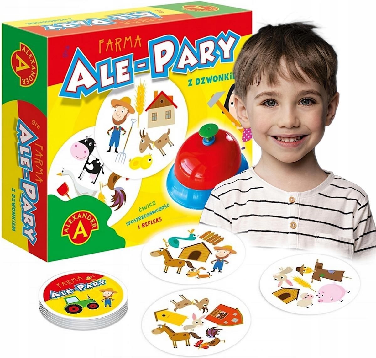 Ale pary gra zrecznosc.z dzwonkiem farma 26764 Ale Pary z Dzwonkiem - FARMA to szalona zabawa na spostrzegawczość. Gra składa się z 31 kart, z 6 obrazkami na każdej z nich. Dwie dowolne karty mają po jednym wspólnym obrazku (ale często różnej wielkości). Gra polega na jak najszybszym znalezieniu …