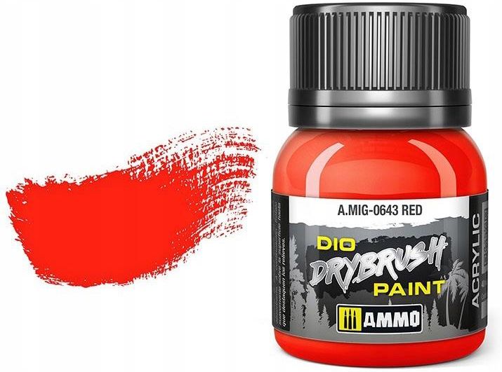 Wysokiej jakości farba akrylowa "Red" do techniki suchego pędzla Drybrush. Szczotkowanie na sucho to stara technika stosowana przez modelarzy od dziesięcioleci. Drybrush suchy pędzel to technika malarska, używana między innymi w modelarstwie dla uwydatnienia detali, nadania wyrazistości, chropowatości i naturalnej szorstkości. Drybrush to nanoszenie farby na podłoże prawie suchym pędzlem (wytartym z farby), ale nadal zawierającym farbę. Dzięki niej staramy się podkreślić trójwymiarowy wygląd różnych tekstur i szczegółów naszych modeli. Ze względu na swoją prostotę i szybkość aplikacji, technika ta znalazła zastosowanie w przemyśle filmowym do malowania zestawów i modeli. Przez wiele lat była to najczęściej stosowana technika przez wszystkich modelarzy na całym świecie. Chociaż w końcu pojawiły się inne nowe techniki weatheringu, szczotkowanie na sucho jest nadal szeroko stosowane w dioramach i pracach ziemnych, budynkach, science fiction i grach wojennych, fantasy, figurkach i pojazdach wojskowych. Jest ona wszechstronna i łatwa w użyciu, może dać przekonujące efekty objętości, autentycznych tekstur i podkreślenia szczegółów na każdym modelu. Firma AMMO Mig Jimenez opracowała nową formułę farby DIO DRYBRUSH przeznaczoną specjalnie do malowania na sucho o idealnej gęstości i specyficznych właściwościach, które sprawiają, że jest to najlepszy rodzaj farby do techniki Drybrush. DIO DRYBRUSH to idealne rozwiązanie dla wszystkich modelarzy, którzy kochają tę kultową technikę, prawdopodobnie jedną z najprostszych i najskuteczniejszych technik weatheringu. Po prostu użyj pędzla dowolnego rozmiaru, zanurz go w farbie, wysusz w dotyku pocierając go o kawałek ręcznika papierowego lub szmatki, aby usunąć z niego nadmiar farby, a następnie nałóż nim delikatnie farbę wcierając w szczegóły modelu, aby stworzyć gładką, jednolitą konsystencję. Linia kolorów DIO DRYBRUSH składa się z szeregu jaśniejszych odcieni, które nadają modelom znoszonego wyglądu, a także ciemniejszych odcieni, w tym odcieni metalicznych, rdzawych i odprysków, aby stworzyć szereg dynamicznych efektów. Słoiczki DIO DRYBRUSH mają bardzo szeroki otwór, aby ułatwić wprowadzanie wszystkich rodzajów pędzli i zawierają kolor do wielu projektów. Ponadto farba jest na bazie wody, łatwa do czyszczenia, nietoksyczna i bezwonna. Kolory te bardzo szybko schną w dotyku w ciągu kilku minut i nie są podatne na zmywanie emailą i washami olejnymi. Metoda aplikacji jest bardzo prosta i składa się tylko z trzech łatwych kroków: 1) Zanurz pędzel bezpośrednio w słoiku i załaduj umiarkowaną ilością farby. 2) Usuń nadmiar farby na chłonną powierzchnię. 3) Delikatnie pocieraj pędzelkiem detale powierzchni modelu, aby je podkreślić i wzmocnić objętość. Wymiary: pojemność: 40ml, słoiczek: średnica 40mm, wysokość 65mm. Dane techniczne: Numer katalogowy: A.MIG0643, Producent: AMMO Mig Jimenez.