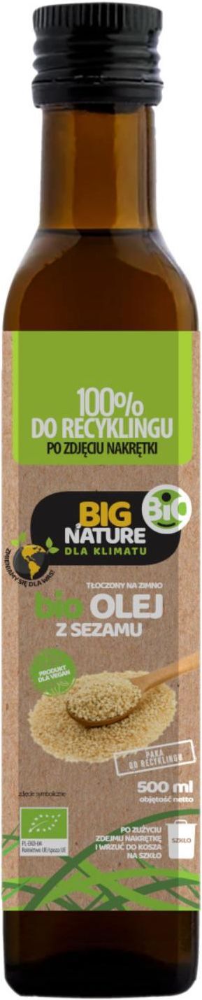 Big Nature - olej sezamowy, tłoczony na zimno, BIO, 500 ml Przemyśl