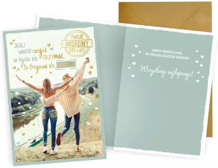 Kartka na Urodziny - Passion Premium z nadrukiem "Twoje urodziny, Sto Lat! (koleżanki)" o wymiarach B6 (16,6 cm x 11,7 cm po złożeniu). Kartki z serii Passion Premium to świetny pomysł na piękną pamiątkę, każda kartka jest zdobiona przynajmniej dwoma rodzajami uszlachetnień - metaliczne lub perłowe folie, brokat, tłoczenie itp. - tyle piękna w takim drobiazgu (uzależnione od rodzaju kartki)! Każda kartka Passion Premium ma kolorowe wnętrze z tekstem wyjątkowych życzeń i grafiką, w komplecie jest także dopasowana kolorystycznie koperta. Karnety, znane również jako kartki, to uniwersalny produkt, który znajduje zastosowanie w wielu sytuacjach. Mogą być używane jako kartki z okazji różnych uroczystości, takich jak urodziny, śluby, chrzty czy Boże Narodzenie, ale również jako karty podziękowania lub życzenia powrotu do zdrowia. Uniwersalność - karnety można wykorzystać w różnych sytuacjach, od urodzin po Boże Narodzenie, dzięki czemu są to uniwersalne prezenty. Osobisty charakter - wpisanie własnych życzeń i dedykacji na karcie sprawia, że prezent staje się bardziej osobisty i dedykowany konkretnemu odbiorcy. Estetyka - karnety zazwyczaj są bardzo estetyczne i eleganckie, co dodaje im wartości jako prezentu.