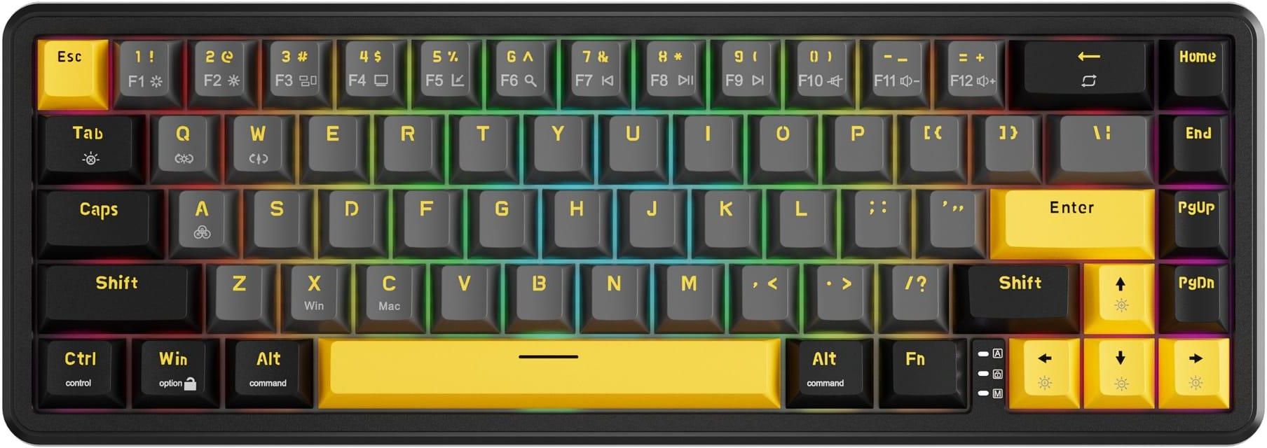 MARVO Magma M40 to klawiatura gamingowa, która łączy kompaktowy rozmiar z precyzją zaawansowanych przełączników magnetycznych o żywotności do 100 mln naciśnięć. To idealny wybór zarówno do grania, jak i pisania. Wyróżniki 67-klawiszowy układ Magnetyczne switche – efekt Halla Outemu Magnetic Pink Crystal (liniowe) o żywotności do 100 mln naciśnięć Regulacja aktywacji (01,-3,3 mm) Wsparcie dla Rapid Trigger & Snap Tap Polling rate 8000 Hz (zapewnia ultraresponsywność) Keycapy PBT w 3 kolorach (szary, czarny, żółty) Konstrukcja non-floating Gniazda Hot Swap Przewód UBS-C w oplocie (1,8 m) Tryby pracy: Windows / macOS Klawiatura MARVO Magma M40 Magnetic Pink Crystal Switch – Sprawdź, za co ją pokochasz! Precyzja Klawiatura MARVO Magma M40 została wyposażona w magnetyczne przełączniki Outemu Magnetic Pin Crystal, które wytrzymują do 100 mln naciśnięć oraz dają możliwość ustawienia dokładnego punktu aktywacji (w zakresie 0,1-3,3 mm). To w połączeniu z funkcjami Rapid Trigger i Snap Tap zapewnia konkursową responsywność. Przemyślana konstrukcja MARVO Magma M40 posiada zamkniętą konstrukcję non-floating i keycapy PBT w 3 kolorach. Do jej produkcji zastosowano odporny na ścieranie materiał, dzięki czemu jest bardzo solidna. Klawiatura MARVO Magma M40 cechuje się także kompaktowością – 67-klawiszowy układ zapewnia maksimum komfortu, jednocześnie nie zajmując zbyt wiele miejsca. Ergonomia Obsługa MARVO Magma M40 jest bardzo wygodna. Klawiatura oferuje dwustopniowe nóżki regulacyjne, antypoślizgowe nakładki i ergonomiczne kąty nachylenia. Dzięki temu zapewnia wysoki komfort zarówno podczas grania, jak i codziennego pisania. Co ważne, wewnątrz obudowy zastosowano dodatkowe warstwy pianki, co wygłusza kliknięcia. Podświetlenie RGB Podświetlenie RGB (aż 19 efektów świetlnych!) poprawia wrażenia z rozgrywki i pozwala stworzyć klimat sprzyjający dobrej zabawie :) Oprogramowanie online Konfiguracja MARVO Magma M40 odbywa się online – poprzez aplikację. Nie musisz do tego instalować żadnego oprogramowania i obciążać systemu. Aplikacja oferuje także łatwy dostęp do ustawień w każdym momencie. Specyfikacja Łączność: przewodowa (USB) Format: 65% Liczba klawiszy: 67 Materiał: ABS Kolor: czarny Długość kabla: 180 cm Waga: ok. 560 g Kompatybilność: macOS, Windows 7+