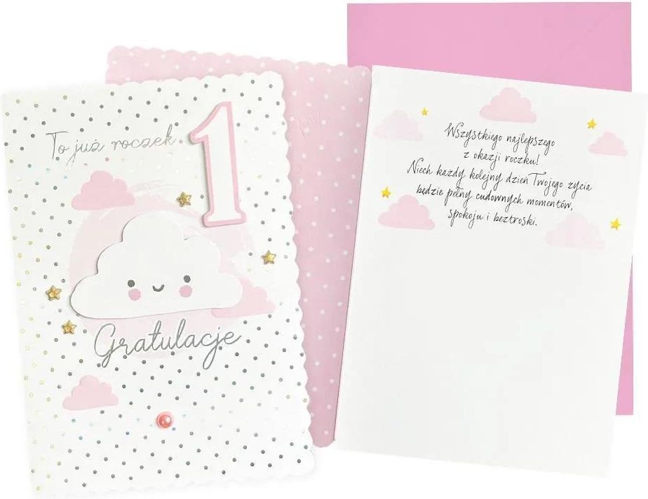 Kukartka Karnet B6 Urodziny Roczek Chmurka Różowa Przemyśl