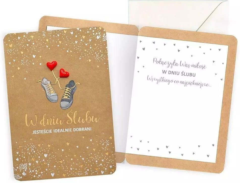 Kartka Dream Cards z motywem "W dniu Ślubu, Kraft (buciki)" jest rozmiaru B6 (16,5 cm x 11,7 cm po złożeniu) z ozdobnej serii Dream Cards - robi wrażenie dzięki atrakcyjnej kolorystyce i ciekawym zdobieniom. To idealny wybór łączący przyjazną cenę z jakością wykonania. Kartki z tej serii mają wyjątkowy dodatek w zestawie - naklejki z cyferkami, z których można ułożyć dowolny wiek solenizanta. W zestawie znajduje się również koperta. Karnety, znane również jako kartki, to uniwersalny produkt, który znajduje zastosowanie w wielu sytuacjach. Mogą być używane jako kartki z okazji różnych uroczystości, takich jak urodziny, śluby, chrzty czy Boże Narodzenie, ale również jako karty podziękowania lub życzenia powrotu do zdrowia. Uniwersalność - karnety można wykorzystać w różnych sytuacjach, od urodzin po Boże Narodzenie, dzięki czemu są to uniwersalne prezenty. Osobisty charakter - wpisanie własnych życzeń i dedykacji na karcie sprawia, że prezent staje się bardziej osobisty i dedykowany konkretnemu odbiorcy. Estetyka - karnety zazwyczaj są bardzo estetyczne i eleganckie, co dodaje im wartości jako prezentu.