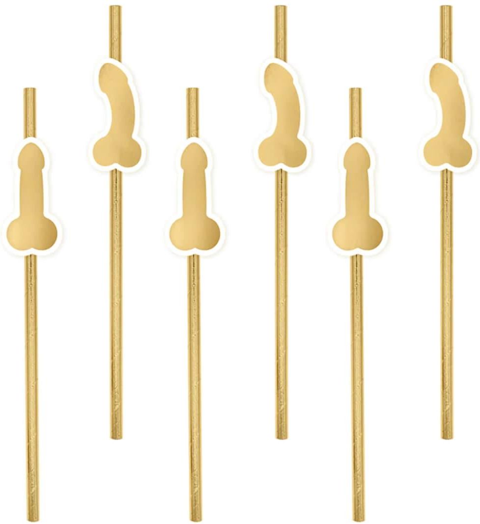 Słomki z penisem w kolorze złotym na wieczór panieński. Długość słomki: 19,7 cm. Opakowanie: 8 szt.