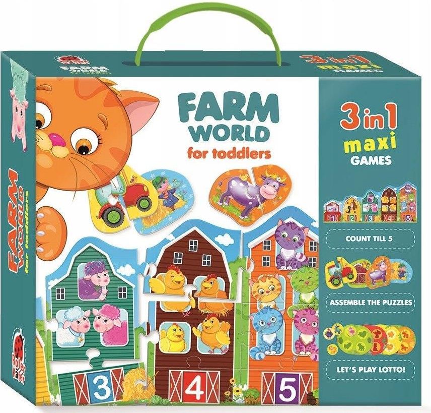 GRA EDUKACYJNA ŚWIAT FARMA DLA PRZEDSZKOLAKÓW PUZZLE LOTTO ROTER KAFER Ten rozbudowany zestaw edukacyjny " Świat Farma - dla przedszkolaków" to wyjątkowa propozycja dla najmłodszych. Zestaw ten oferuje trzy fascynujące gry w jednym, co pozwala dzieciom na poznanie wiejskich zwierząt i liczb od 1 do 5 w ciekawy i interaktywny sposób. Pierwszy zestaw zawiera kolorowe puzzle, które zachęcają dzieci do rozwoju wyobraźni i logicznego myślenia. Układając te puzzle, dzieci poznają pojęcie części i całości, jednocześnie doskonaląc swoje zdolności manualne. Zestaw domków-puzzli, pomogą w nauce liczenia od 1 do 5. Każdy domek przedstawia innych mieszkańców farmy. Dzieci mogą zaglądać do okienek i liczyć zwierzątka w każdym z nich. To doskonała okazja do nauki i zabawy jednocześnie. Gra typu "Lotto", w której dzieci mogą wypełniać pola do gry odpowiednimi okrągłymi fiszkami z obrazkami zwierząt farmy. To wspaniały sposób na poznanie nazw zwierząt i ich wyglądu. Gra lotto rozwija spostrzegawczość i uczy dzieci rozpoznawania różnic i podobieństw. Ten zestaw łączy zabawę z nauką w sposób stymulujący rozwój przedszkolaków. Dzieci uczą się o zwierzętach, liczby od 1 do 5, logicznego myślenia, koncentracji i zdolności manualnych. Zestaw zawiera zestaw kolorowych puzzli, grę typu 'Lotto", zestaw domków-puzzli "Świat Farma - dla przedszkolaków" to pełen przygód zestaw edukacyjny, który stanowi wspaniałe narzędzie do rozwoju młodszych odkrywców. Ten rozbudowany zestaw edukacyjny " Świat Farma - dla przedszkolaków" to wyjątkowa propozycja dla najmłodszych. Zestaw ten oferuje trzy fascynujące gry w jednym, co pozwala dzieciom na poznanie wiejskich zwierząt i liczb od 1 do 5 w ciekawy i interaktywny sposób. Pierwszy zestaw zawiera kolorowe puzzle, które zachęcają dzieci do rozwoju wyobraźni i logicznego myślenia. Układając te puzzle, dzieci poznają pojęcie części i całości, jednocześnie doskonaląc swoje zdolności manualne. Zestaw domków-puzzli, pomogą w nauce liczenia od 1 do 5. Każdy domek przedstawia innych mieszkańców farmy. Dzieci mogą zaglądać do okienek i liczyć zwierzątka w każdym z nich. To doskonała okazja do nauki i zabawy jednocześnie. Gra typu "Lotto", w której dzieci mogą wypełniać pola do gry odpowiednimi okrągłymi fiszkami z obrazkami zwierząt farmy. To wspaniały sposób na poznanie nazw zwierząt i ich wyglądu. Gra lotto rozwija spostrzegawczość i uczy dzieci rozpoznawania różnic i podobieństw. Ten zestaw łączy zabawę z nauką w sposób stymulujący rozwój przedszkolaków. Dzieci uczą się o zwierzętach, liczby od 1 do 5, logicznego myślenia, koncentracji i zdolności manualnych. Zestaw zawiera zestaw kolorowych puzzli, grę typu 'Lotto", zestaw domków-puzzli "Świat Farma - dla przedszkolaków" to pełen przygód zestaw edukacyjny, który stanowi wspaniałe narzędzie do rozwoju młodszych odkrywców.