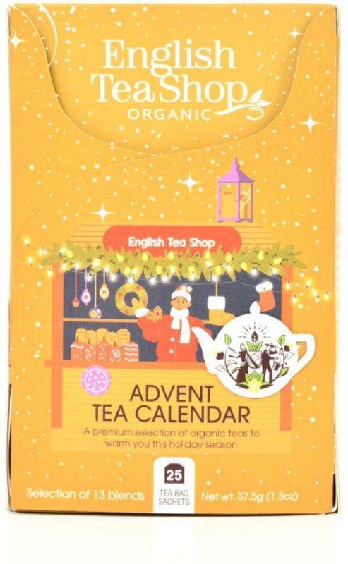 25 saszetek z ekologicznymi herbatkami w 13 różnych smakach. Przyjemne odliczanie do gwiazdki. - Gingerbread Treat - Ekologiczna herbata czarna z cynamonem, imbirem, jabłkiem i kardamonem. - Ghostly Green - Ekologiczna herbata zielona z cynamonem, imbirem, miętą pieprzową i płatkami róży. - White Wonderland - Ekologiczna herbata biała z cynamonem, kakao, miętą pieprzową, lukrecją i rumiankiem. - Festive Spice - Ekologiczna herbata czarna z cynamonem, skórką z pomarańczy, pieprzem, imbirem, goździkami, gałką muszkatołową i kardamonem. - Winter Warmer - Ekologiczna herbatka rooibos z kakao, imbirem, kwiatem muszkatołowym i anyżem. - Super Star Anise - Ekologiczna herbata czarna z imbirem, goździkami i anyżem. - Tropical Lemongrass - Ekologiczna herbatka z trawą cytrynową, hibiskusem, miętą pieprzową, dziką różą, rumiankiem i jabłkiem. - Happy Holiday - Ekologiczna herbata zielona z cynamonem, pieprzem, granatem, imbirem, goździkami, gałką muszkatołową i kardamonem. - Post-party Refresh - Ekologiczna herbata zielona z garcynią, cynamonem i jagodami acai. - Berry Rooibos - Ekologiczna herbatka rooibos z cynamonem, jabłkiem, maliną, jagodą, żurawiną. - Spicy Pumpkin - Ekologiczna herbata zielona z cynamonem, imbirem, goździkami, gałką muszkatołową, czarnym pieprzem, anyżem i kardamonem. - Seasonal Siesta - Ekologiczna herbatka z trawą cytrynową, cynamonem, imbirem, garcynią, hibiskusem i skórką z cytryny. - Ginger Cranberry - Ekologiczna herbata czarna z cynamonem, imbirem, goździkami i żurawiną.