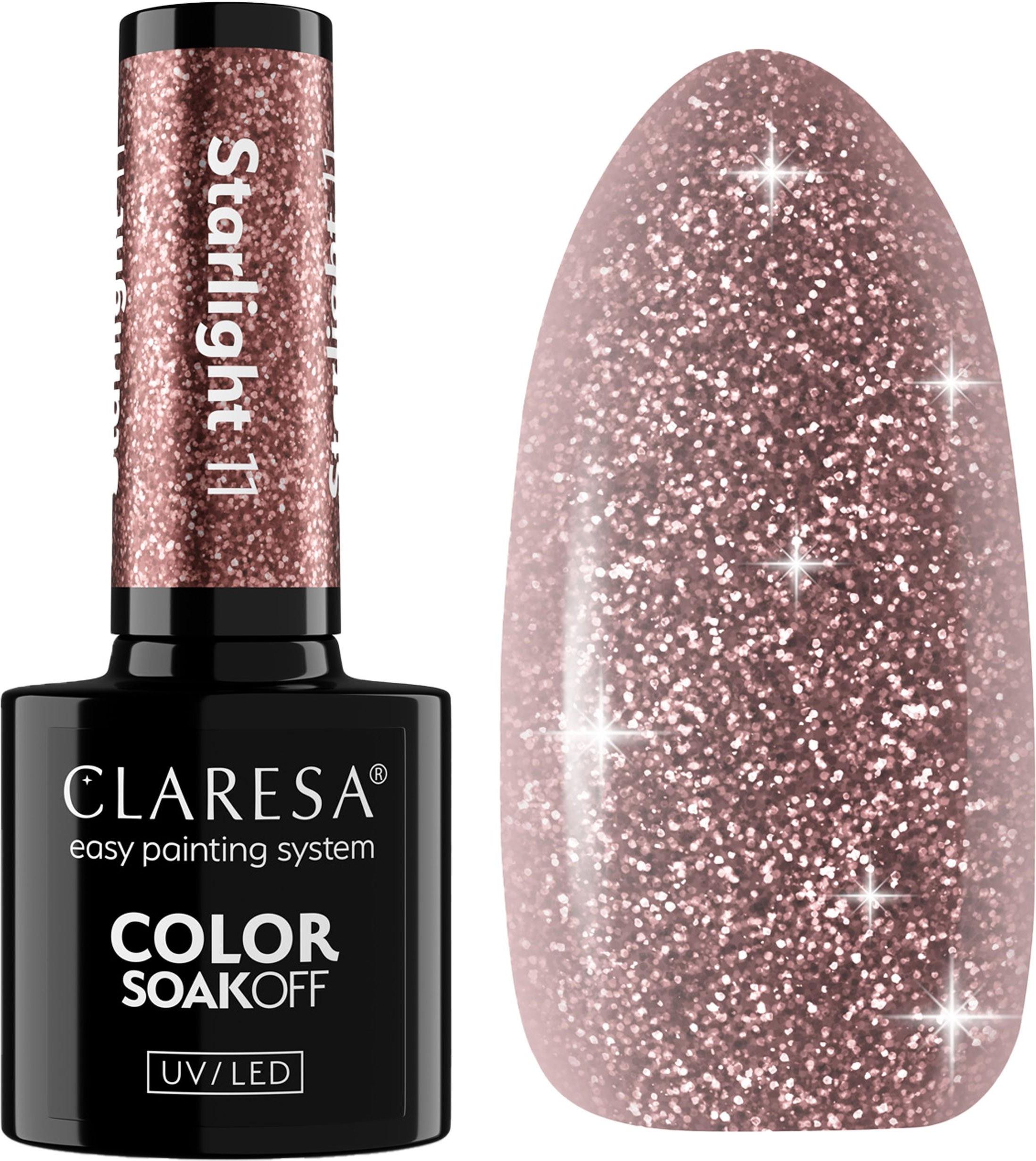 CLARESA Lakier hybrydowy Starlight 11 -5g Kolekcja Starlight od Claresa to prawdziwa uczta dla fanów błysku i luksusowych, migoczących odcieni. Każdy lakier z tej serii kryje w sobie efekt flash, który ujawnia swoją magiczną naturę w sztucznym świetle. W świetle dziennym brokatowe drobinki …