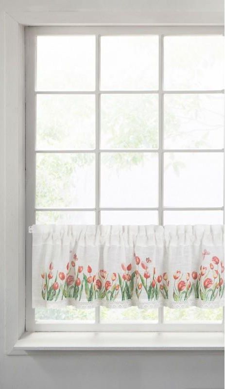 Firana gotowa zazdrostka na taśmie STELLA 150x30 Eurofirany biała czerwona zielona tulipany Postaw na jakość i styl – firany idealnie dopasują się do każdego wnętrza! Kolekcja firan gotowych na taśmie STELLA wyprodukowana została przez markę Eurofirany. Producent ten zawsze dba o dobór jak …