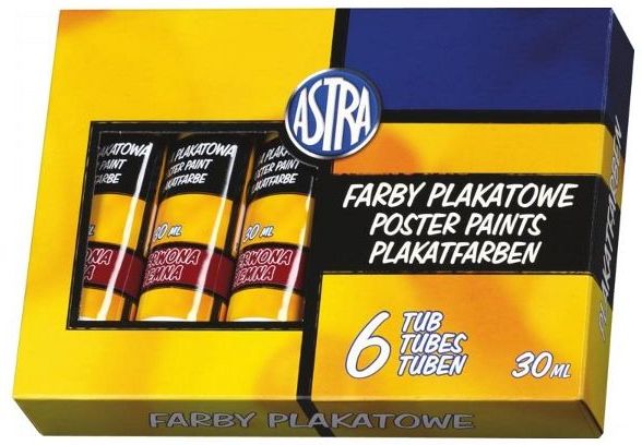 Farby plakatowe są farbami wodnymi, kryjącymi o czystych i intensywnych barwach. Ze względu na znakomitą przyczepność, nadają się do malowania na takich podłożach jak: papier, karton, drewno, ceramika, kamień. Wymalowane powierzchnie po wyschnięciu są matowe o intensywnych barwach, odporne na działanie światła i ścieranie. Wysoką jakość farb uzyskujemy dzięki wysokiej jakości pigmentom i spoiwom użytym do produkcji tych farb, oraz technologii produkcji. Kraj produkcji: PL Producent: ASTRA S.A. ul. Poleczki 23 02-822 Warszawa (PL) tel: (22) 346 07 85 email: sekretariat@astrapolska.pl Producent/osoba odpowiedzialna za bezpieczeństwo produktuASTRA S.A.ul. Poleczki 2302-822 Warszawasekretariat@astrapolska.pl(22) 346 07 85