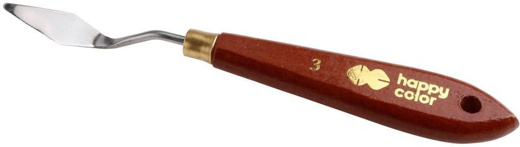 Szpachelka malarska nr 3 Happy Color Szpachelka wykonana z nierdzewnej sprężyste. Osadzona w rączce z drewna bukowego. Może służyć jako narzędzie do tworzenia tekstur i nakładania grubych warstw farb olejnych i akrylowych. Dzięki swojemu kształtowi pozwala na uzyskanie ciekawych efektów strukturalnych na pracy. Duży wybór dostępnych kształtów daje możliwość dopasowania szpachelki do charakteru pracy oraz pozwala na uzyskanie różnorodnych efektów.