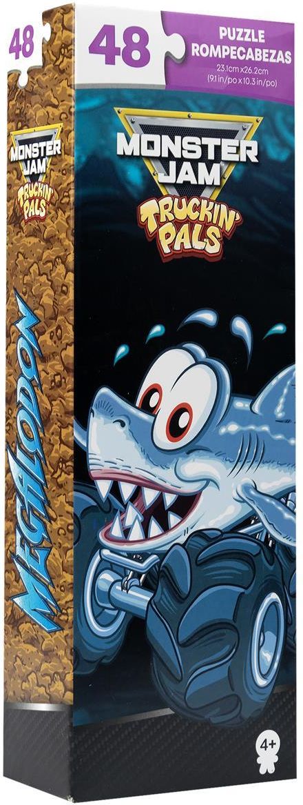 Puzzle Monster Jam Truckin' Pals zostały stworzone przez zyskującą coraz większą popularność firmę Spin Master. Po ułożeniu powstaje obrazek o wymiarach 26,2 x 23,1 cm przedstawiający pojazd Megalodon. Jest to Monster Truck przypominający rekina.