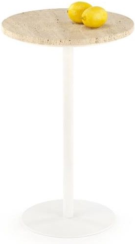 Ława z Kamienia Trawertynu Okrągła Wysoka Biała Stolik Kawowy Traverso S ✅ Ława Traverso S Elegancka ława Traverso S to doskonała propozycja do salonu urządzonego w stylu nowoczesnym. Model wykonany z kamienia i stali malowanej proszkowo to doskonałe połączenie trwałości i elegancji. Ciekawa i oryginalna forma przyciąga uwagę i sprawi, że ława stanie się znakomitym uzupełnieniem Twojego salonu. ✅ Wymiary: Średnica: 35 cm Wysokość: 56 cm ✅ Blat z kamienia - trawertynu: Czym charakteryzuje się kamień - trawertyn? Jego charakterystyczną cechą są wyraźne warstwy i struktury, które nadają mu niepowtarzalny wygląd. Blaty mebli wykonane z trawertynu wyróżniają się elegancją i naturalnym urokiem, dodając wnętrzu wyjątkowego charakteru i stylu. Ponadto, trawertyn jest materiałem wyjątkowo trwałym i odpornym na uszkodzenia, co sprawia, że doskonale sprawdza się w codziennym użytkowaniu. Jego unikalna tekstura i koloryt pozwalają na stworzenie oryginalnych i efektownych kompozycji meblowych, które będą przyciągać wzrok i zachwycać przez wiele lat. ✅ Podstawa ze stali malowanej proszkowo: Metalowy stelaż gwarantuje meblowi stabilność i wytrzymałość. Metoda malowania proszkowego oferuje dużo lepszy efekt wizualny niż przy okazji tradycyjnego lakierowania. Powłoki malowane tym sposobem wykazują wysoką trwałość na zarysowania i otarcia.